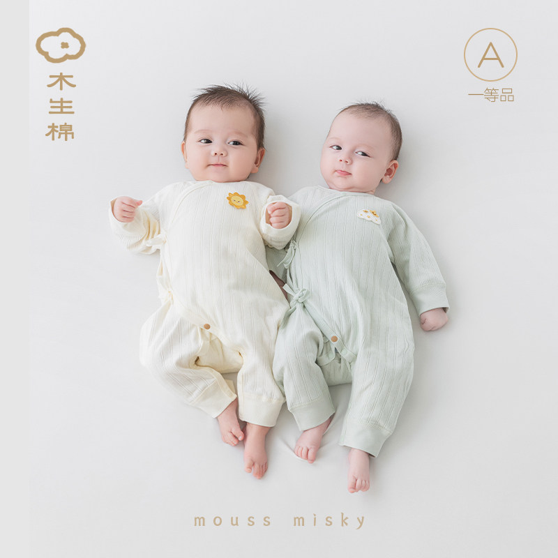 木生棉新生儿纯棉衣服春秋季宝宝长袖连体衣居家和尚服婴儿哈衣服
