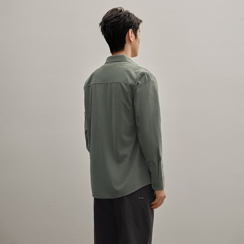 HLA/海澜之家简约纯色长袖休闲衬衫25秋新灯芯绒舒适亲肤上衣男