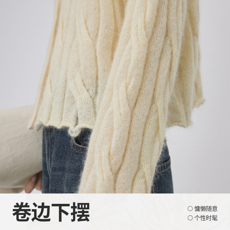 LESS春秋马海毛开衫女休闲简约圆领短款针织衫2N9310820