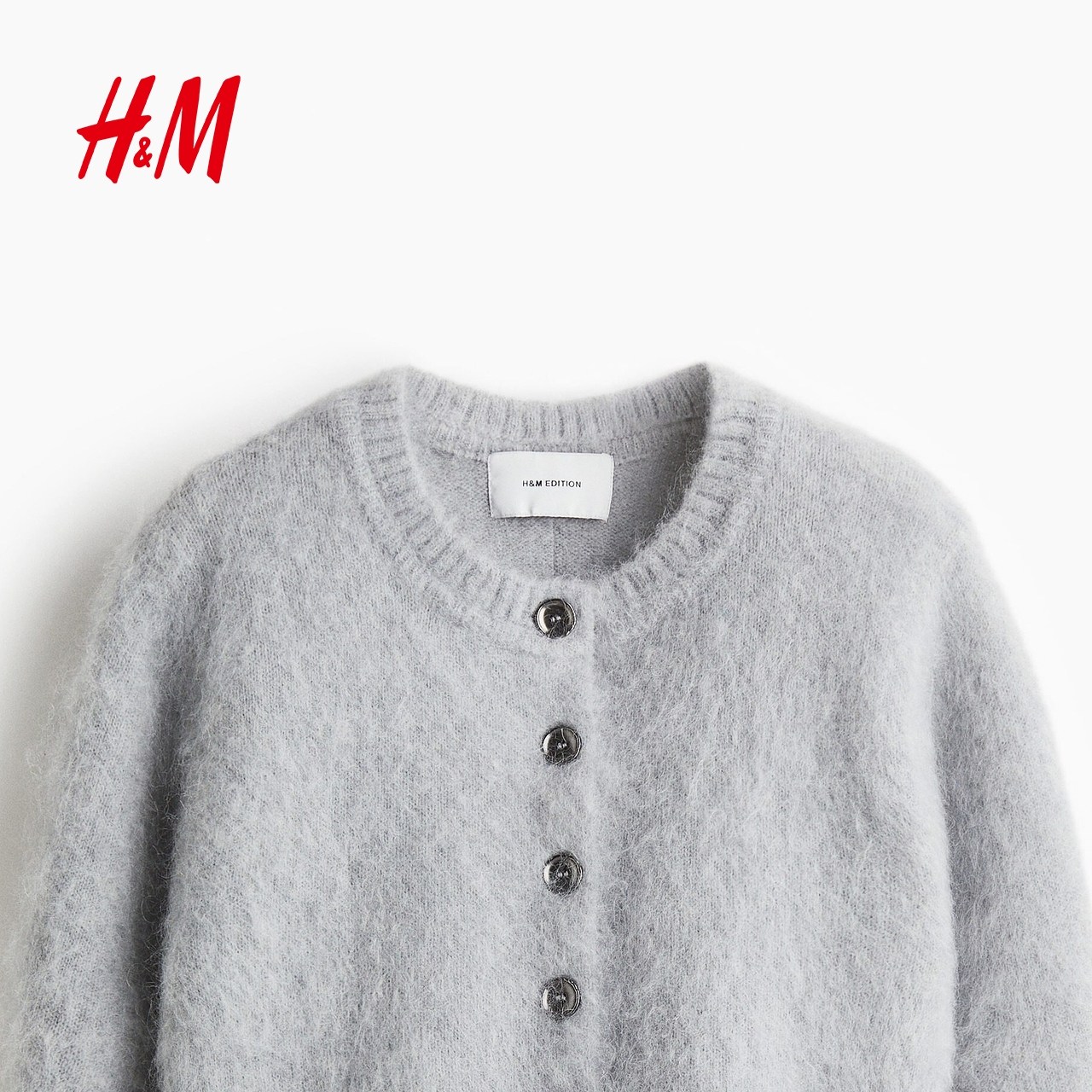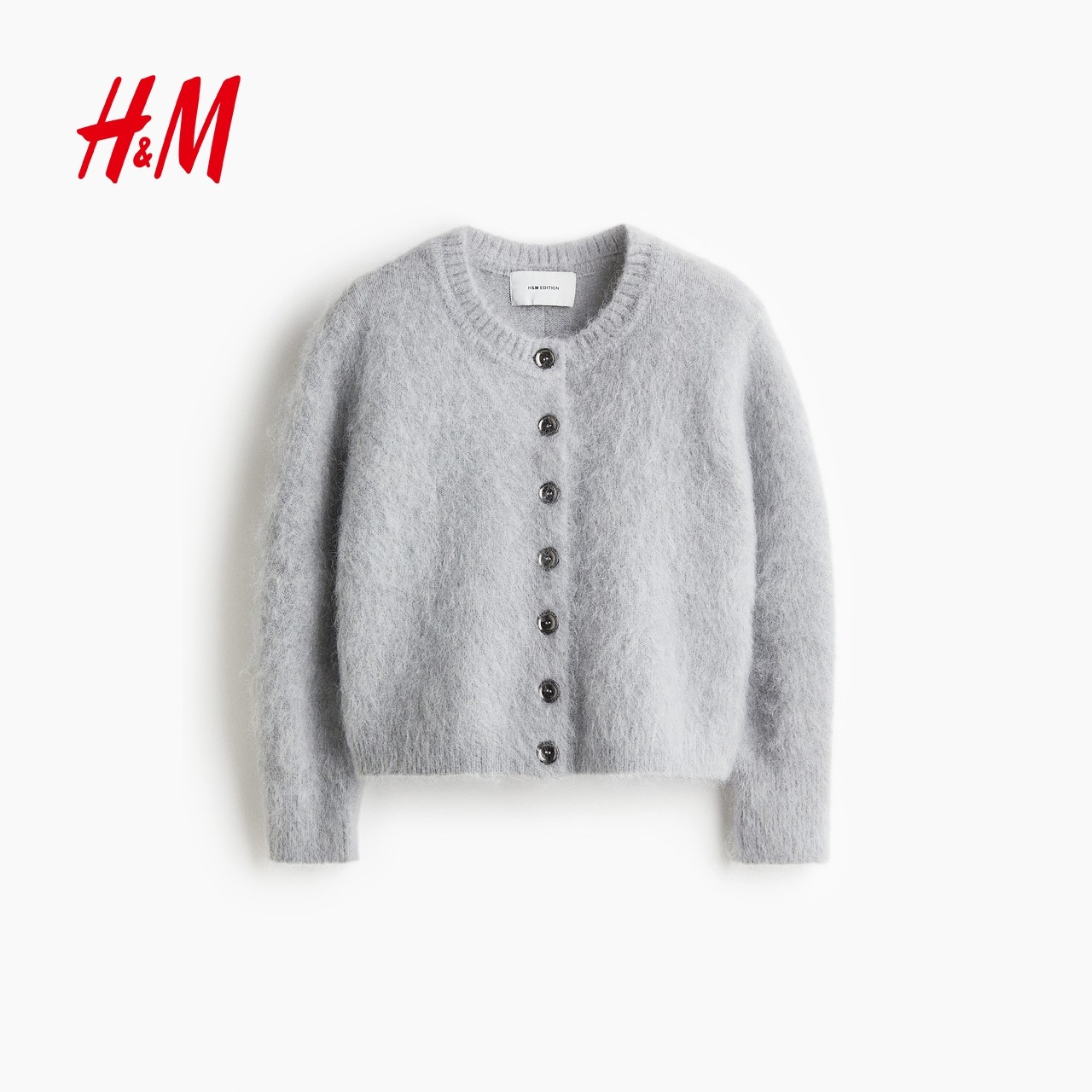 HM女装毛针织衫2025冬季新款圆领单排扣马海毛混纺开衫1300042