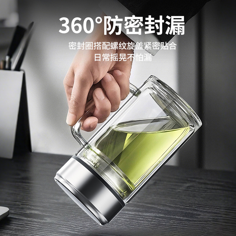 双层加厚玻璃杯茶杯男士泡茶专用大容量水杯家用办公室杯子带把手