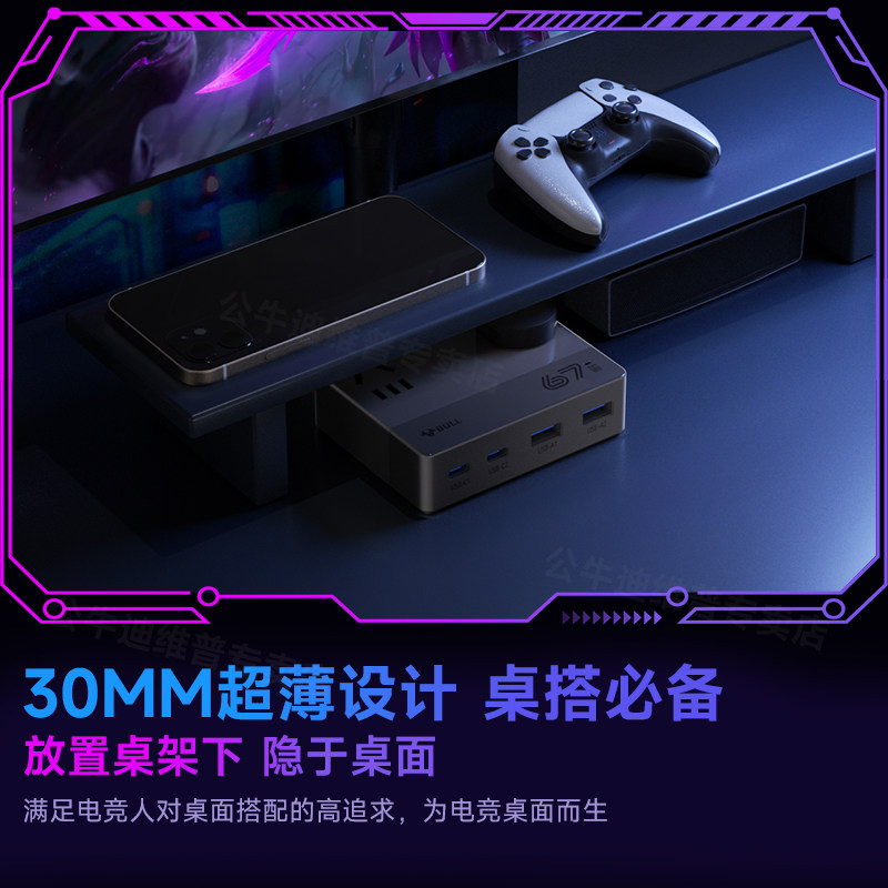 公牛氮化镓桌面充电站usb多功能智能一转多100W快充插排typec电源多口充电坞电竞宿舍高颜值立式桌面拓展插座