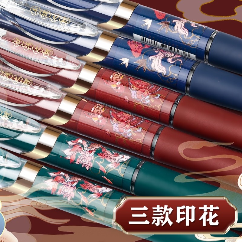晨光K35锦鲤按动中性笔复古中国风高颜值按动笔签字笔黑色水笔学生用考试专用笔速干0.5mm子弹头碳素笔圆珠笔