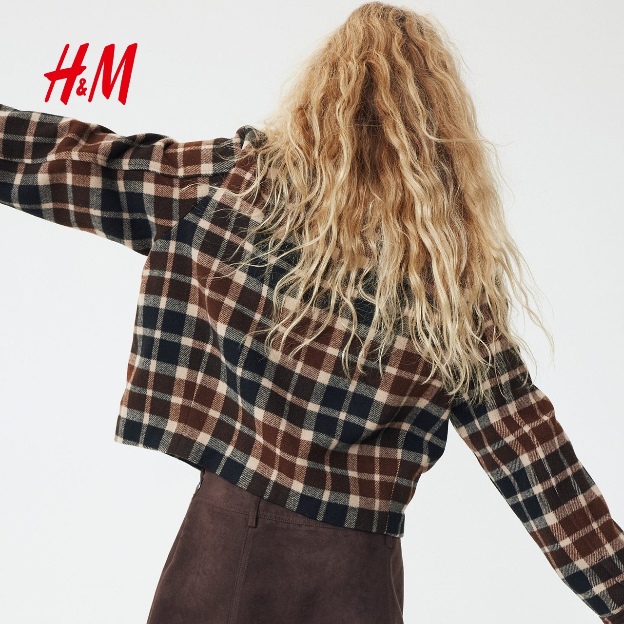 HM女装短外套2025冬季新款翻折领英伦风衬衫式格纹夹克1298605