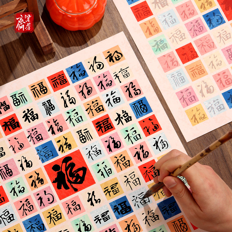 百福图书法作品纸硬卡手写描红宣纸福字百福卡纸贺寿挂画生日礼乔迁新婚订婚闺蜜临摹DIY百福图创意新年礼物