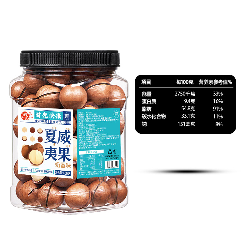 每果时光夏威夷果400g奶香味每日坚果干果年货壳薄坚果炒货零食