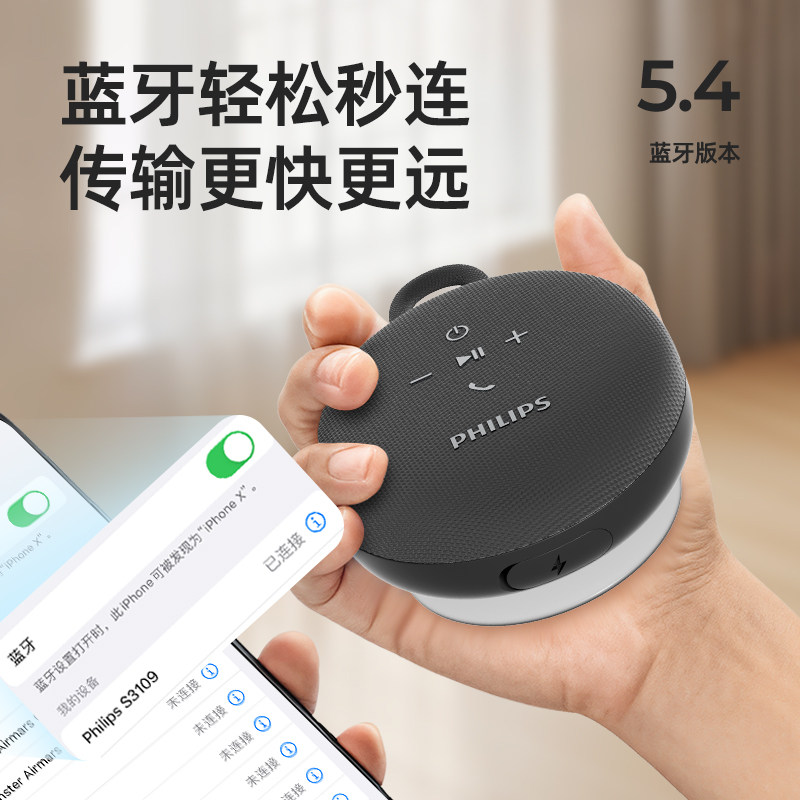Philips飞利浦无线蓝牙音箱电脑桌面户外防水便携低音炮小音响