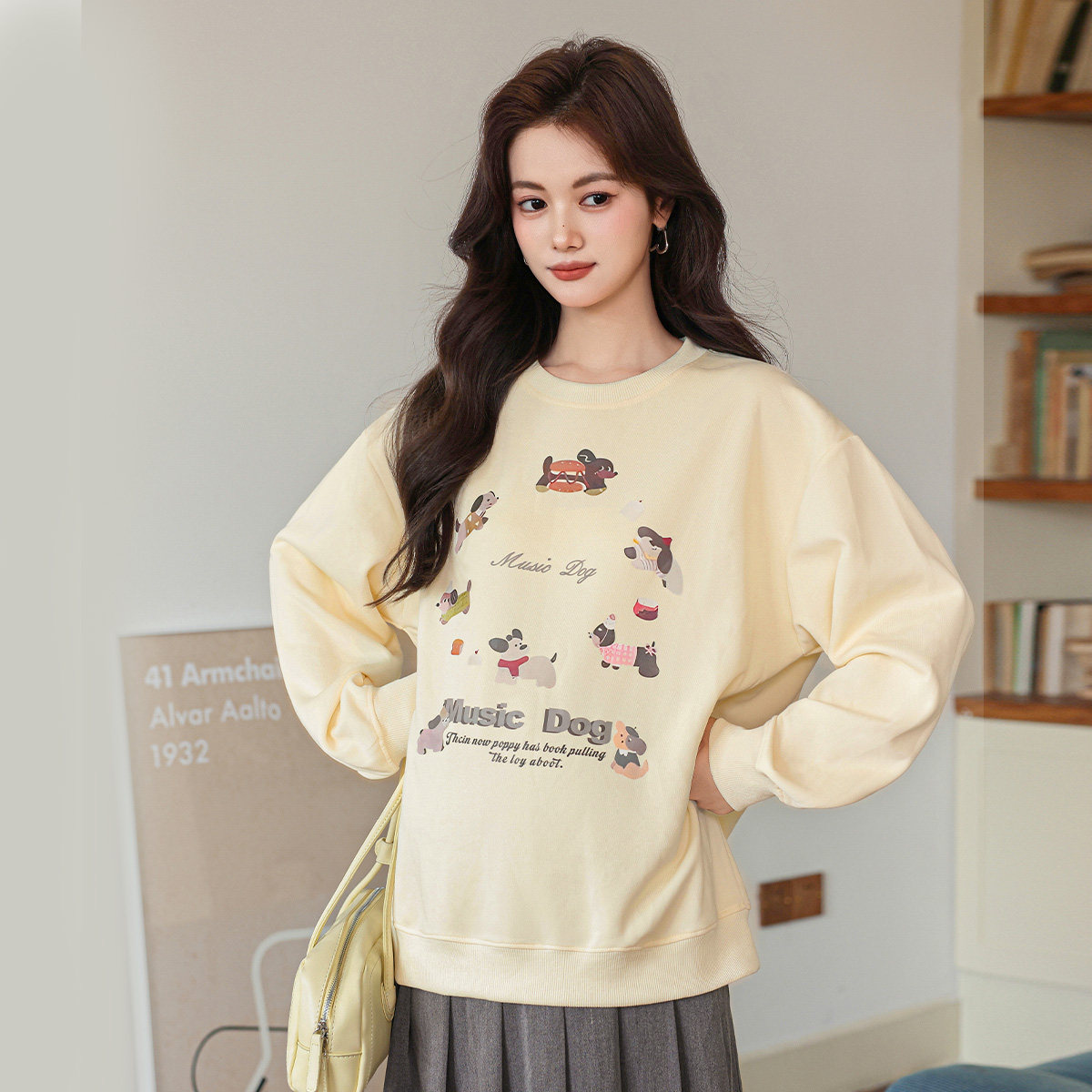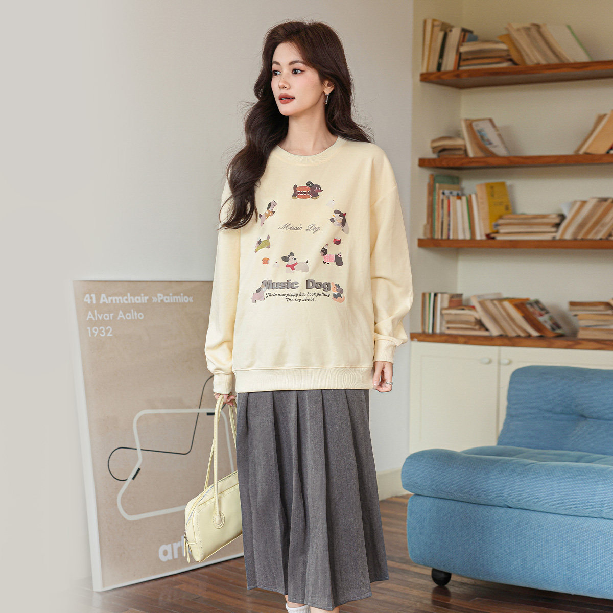 婧麒孕妇套装新款秋春孕妈高级狗狗卫衣学院风压褶半身裙孕妇春装