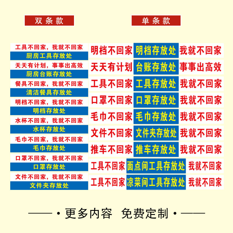 厨房管理标识4D标语酒店食堂餐饮物品定位贴毛巾工具存放处标签