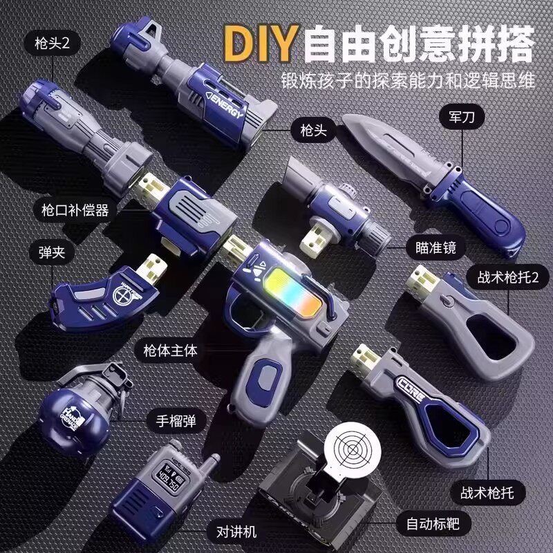 儿童玩具枪拼插DIY百变拼装磁力枪电动声光组合高端男孩生日礼物