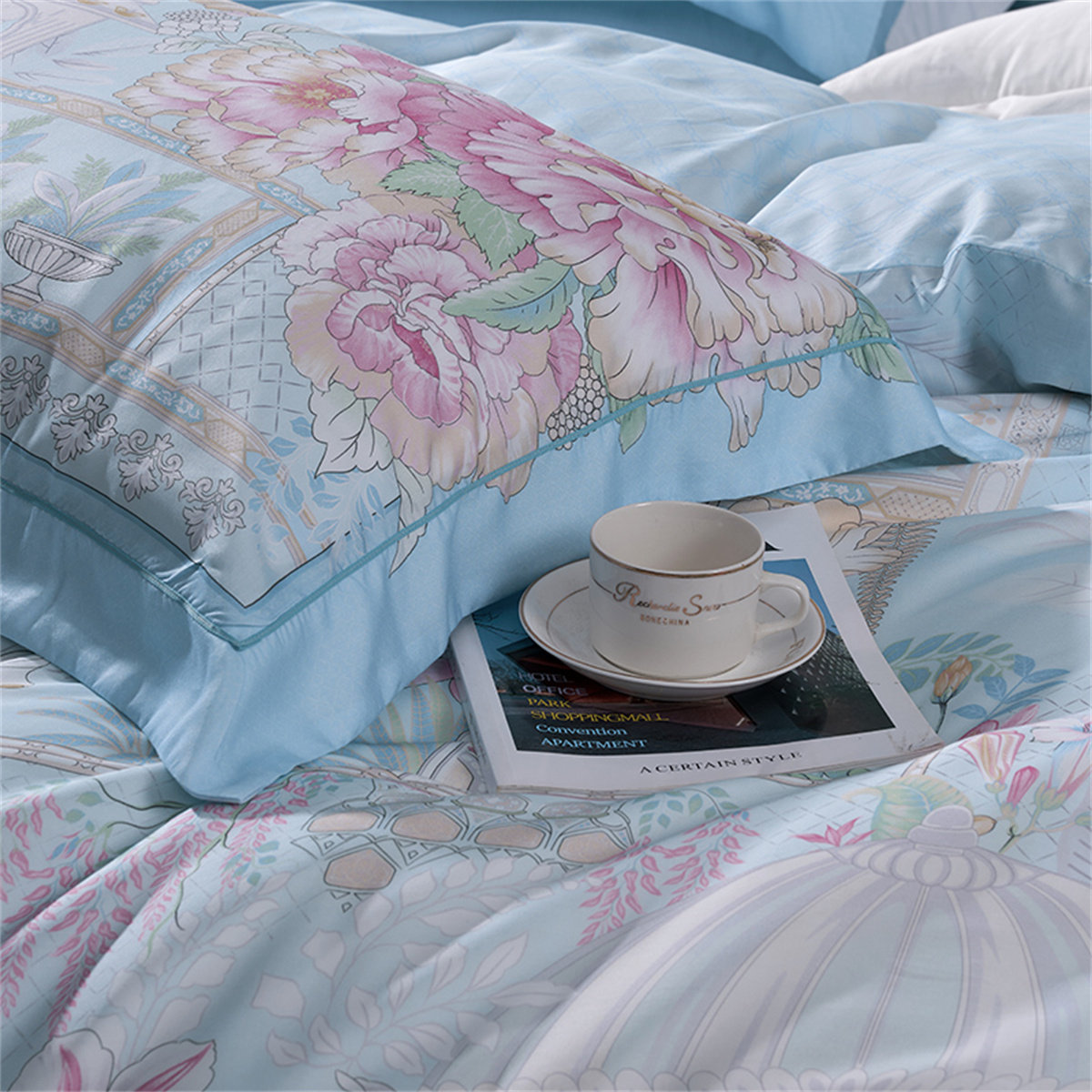 A类双层纱床上四件套纯棉全棉新款田园床单件被套被罩宿舍三件套4