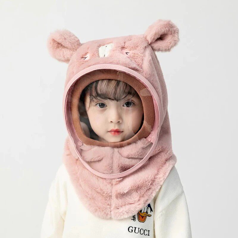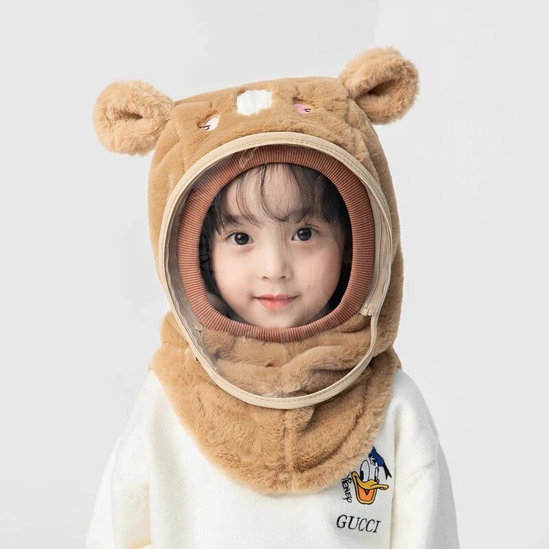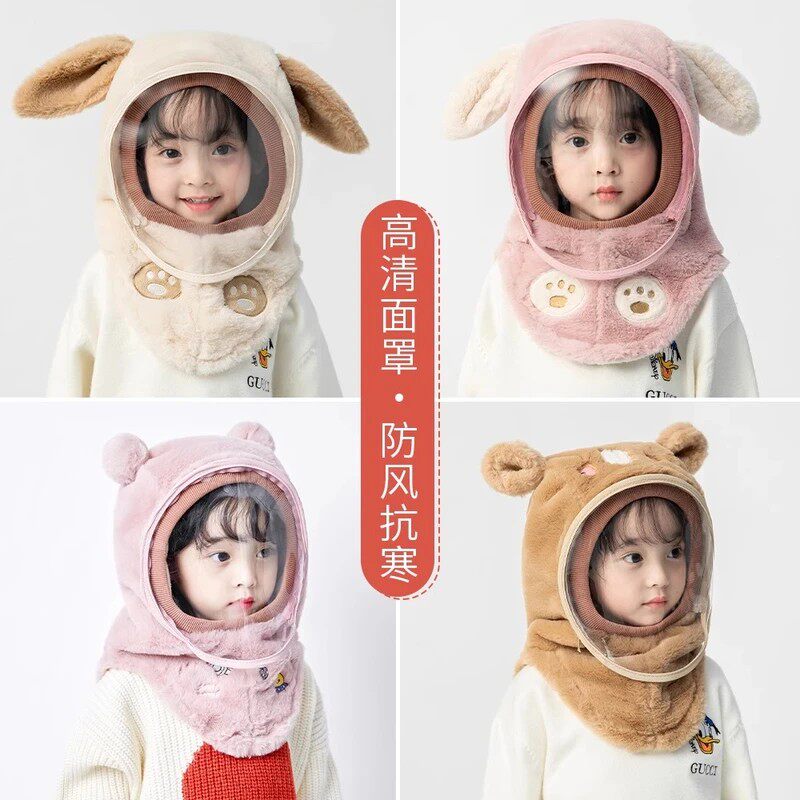 宝宝帽子冬季保暖男女儿童帽围巾一体帽防护面罩护耳套头防风帽子