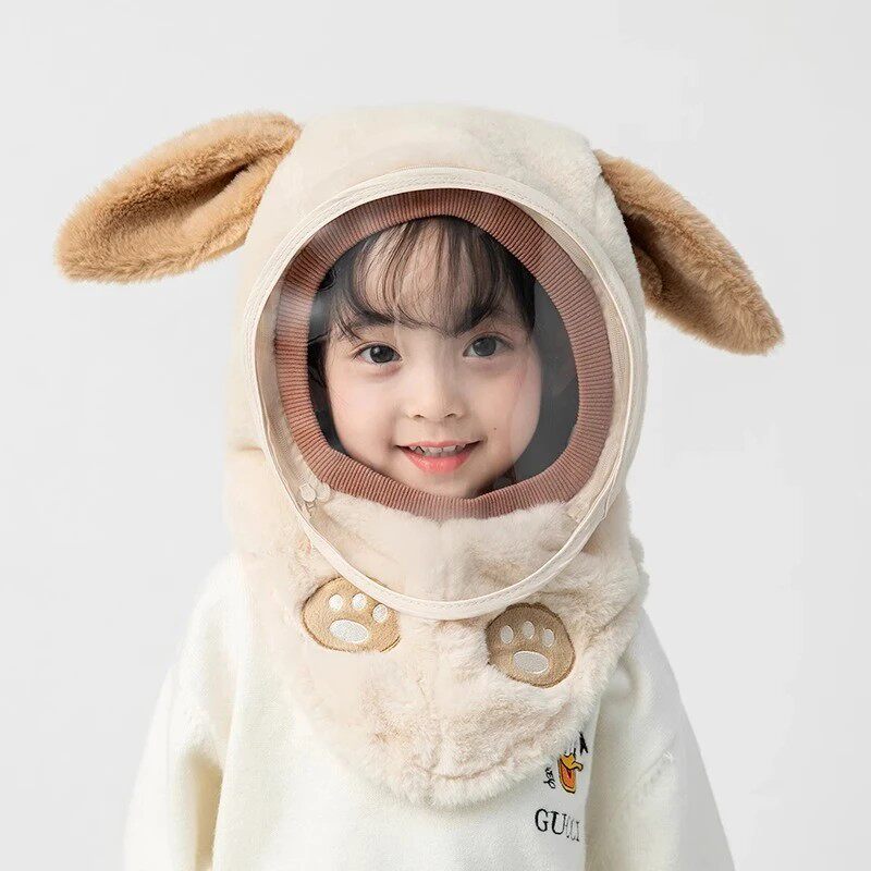 尼多熊儿童帽子围巾一体冬季防风帽宝宝毛绒护耳帽女童加厚保暖帽