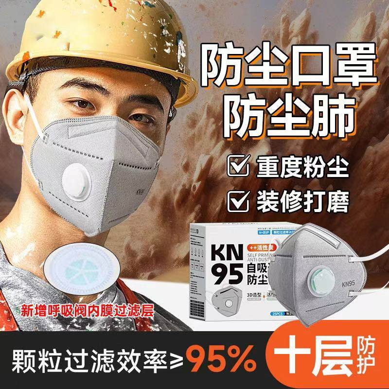 kn95口罩Kn95防尘防工业粉尘带呼吸阀活性炭煤矿肺专用打磨立体