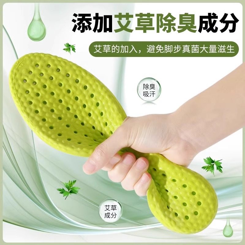 防臭乳胶鞋垫男款女久站不累踩屎感艾草除臭吸汗透气运动减震舒适