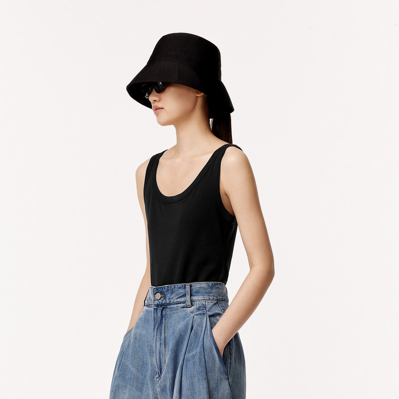 莫代尔吊带背心女夏薄款纯色无袖打底衫修身百搭简约内搭U领上衣