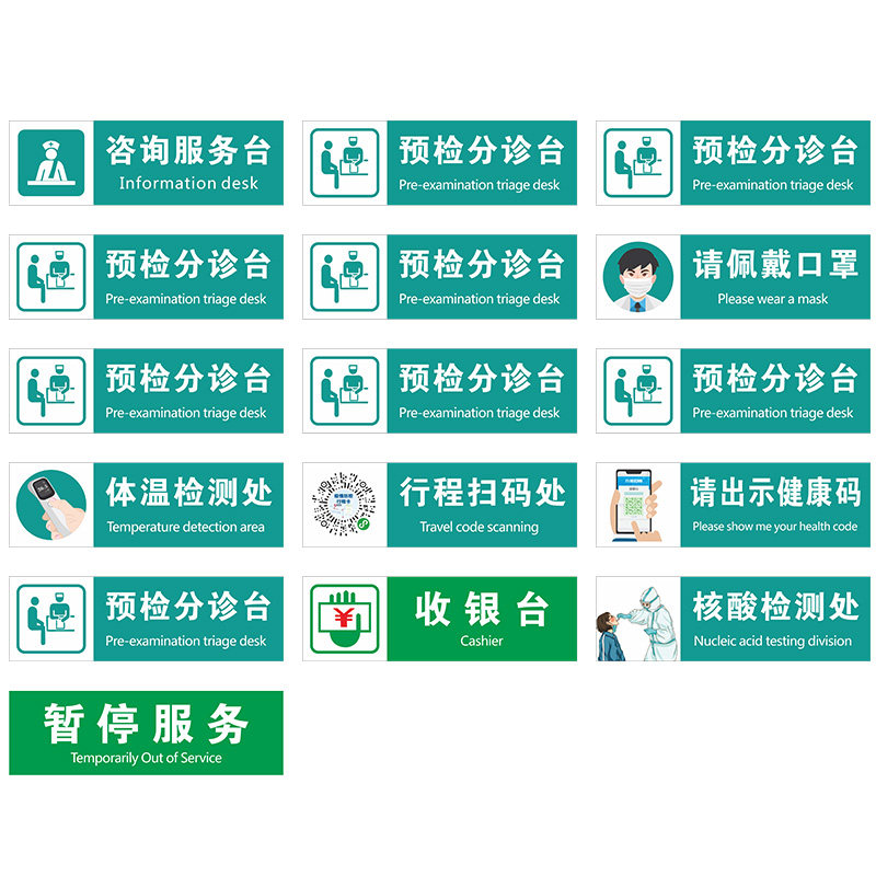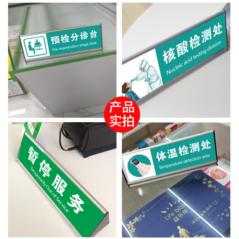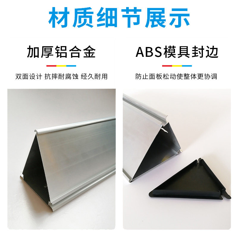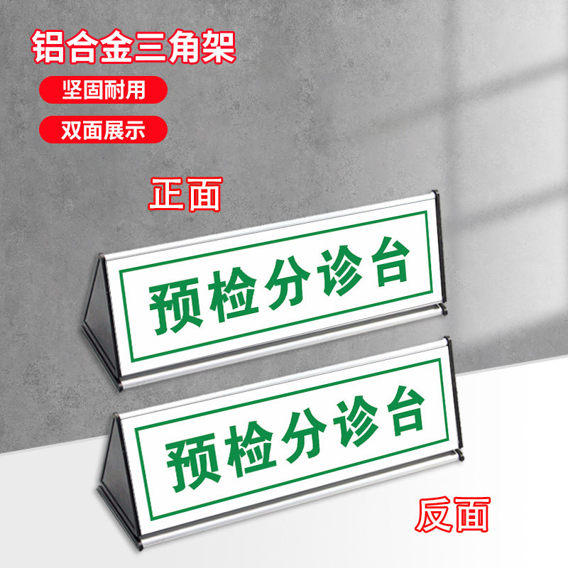 预检分诊台三角桌牌请佩戴口罩出示健康码体温检测处铝合金三角台标识牌温馨提示牌银色咨询服务双面三角桌牌