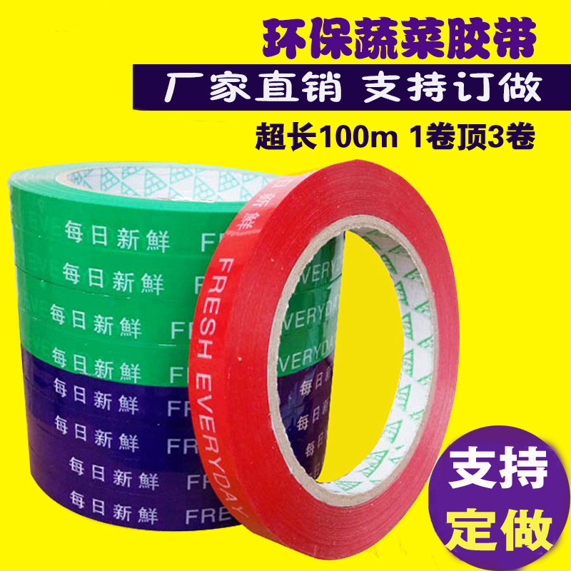 超市捆扎蔬菜胶带果蔬扎口胶带生鲜捆扎环保绑菜胶带100m定做包邮