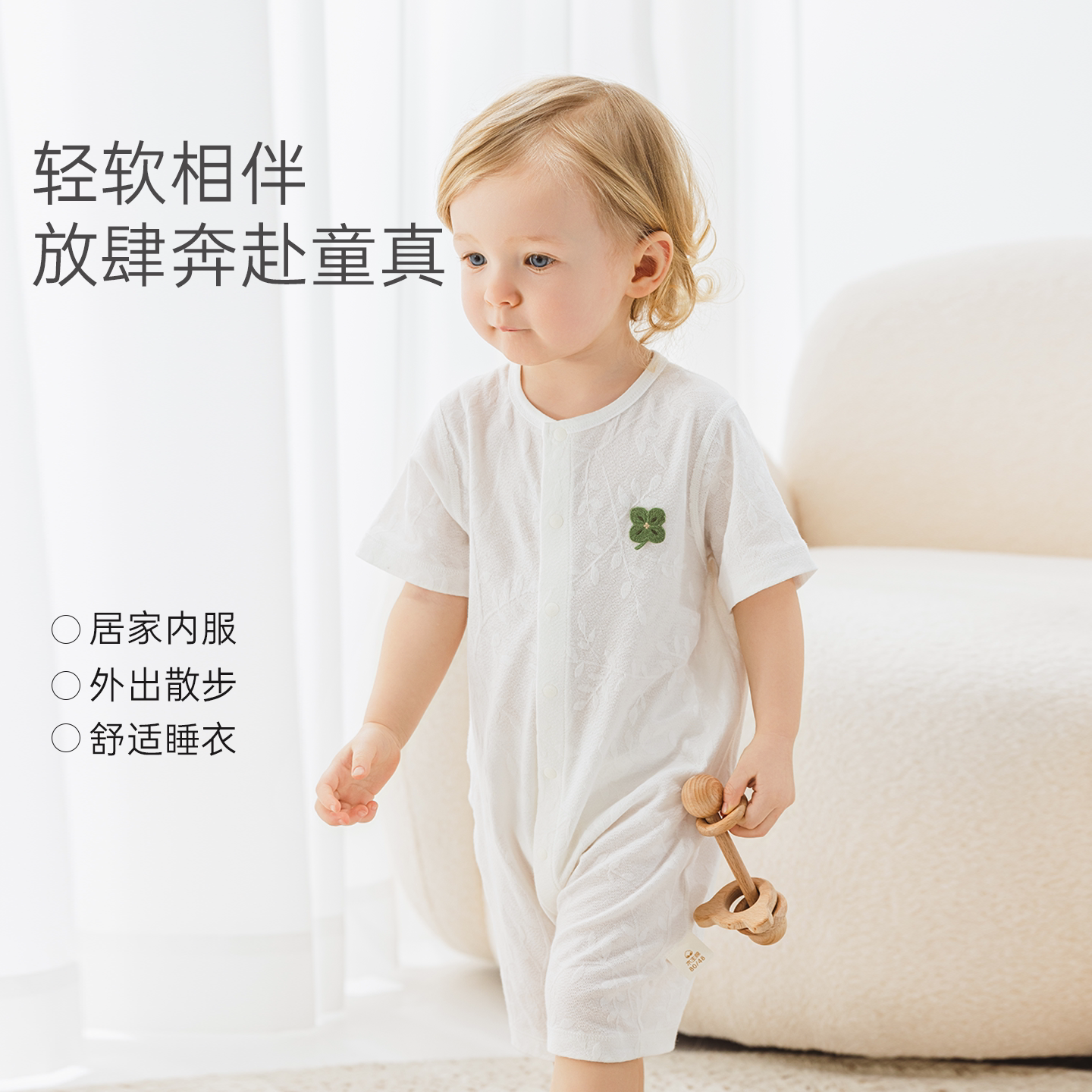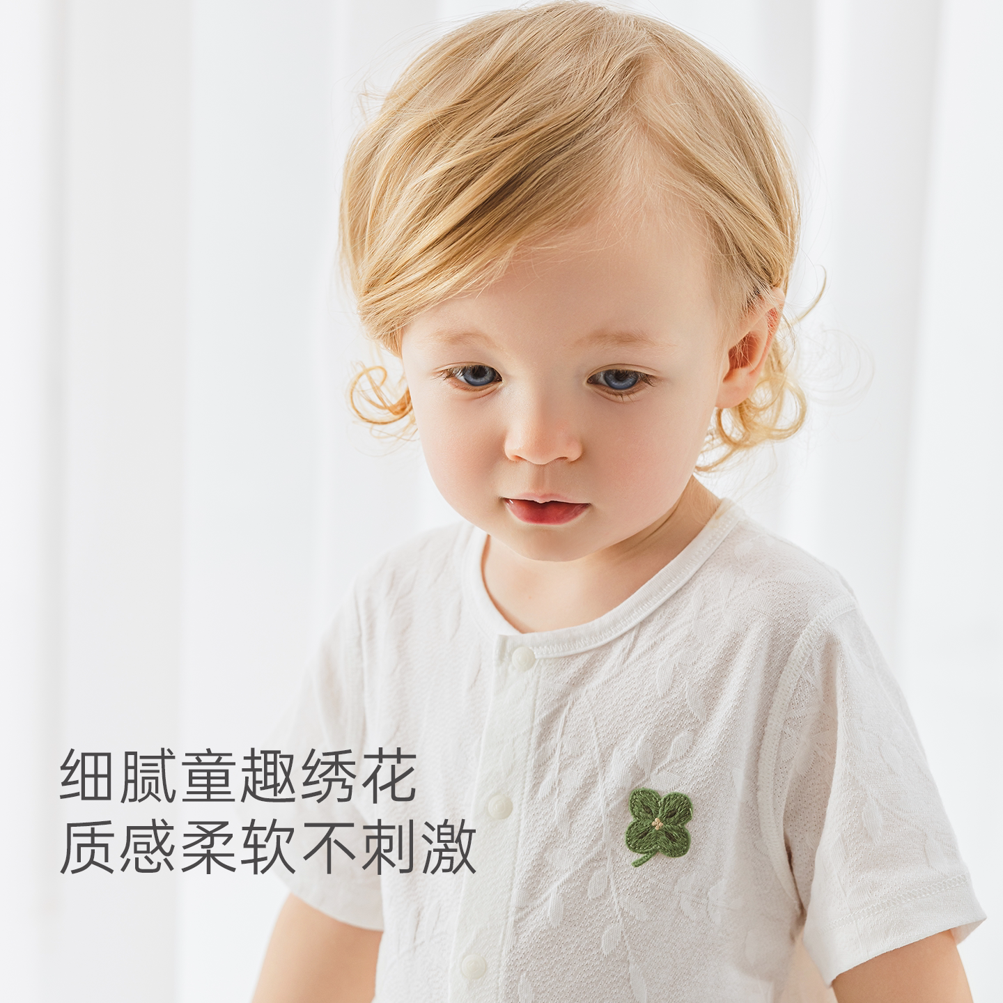 【 10A抗菌】宝宝夏季薄款短袖连体衣婴儿弹力哈衣爬爬服夏装睡衣