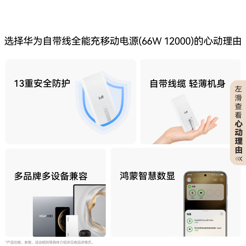 【新品】华为自带线全能充移动电源(66W 12000)充电宝 3C认证 可上飞机 旗舰手机电芯适配Mate80系列