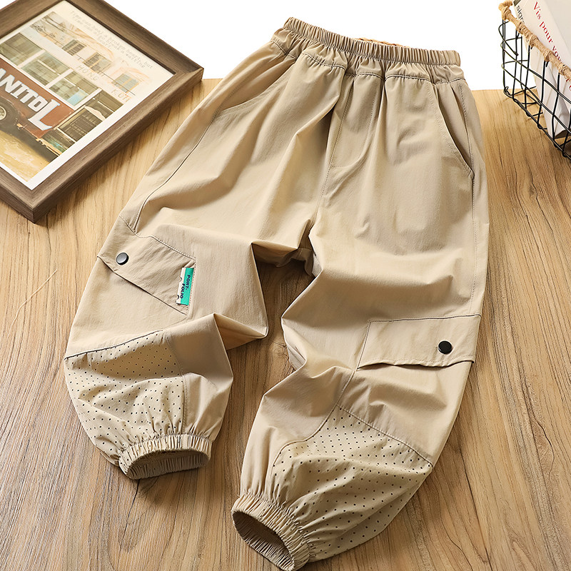 男童薄款裤子夏季2025新款网眼儿童速干裤中大童洋气冰丝运动长裤