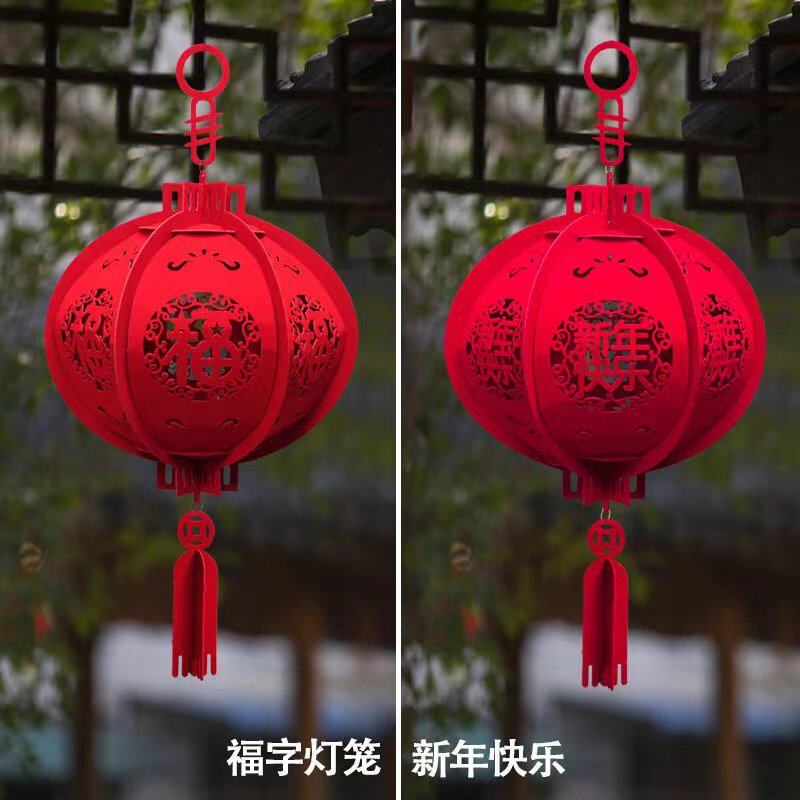 新年植绒小灯笼2026户外庭院子红宫灯春节过年装饰品年味场景布置