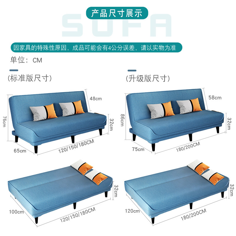 多功能折叠沙发床两用布艺沙发简易单人客厅出租折叠床懒人小户型