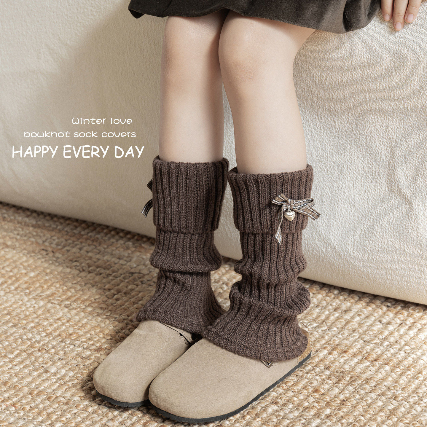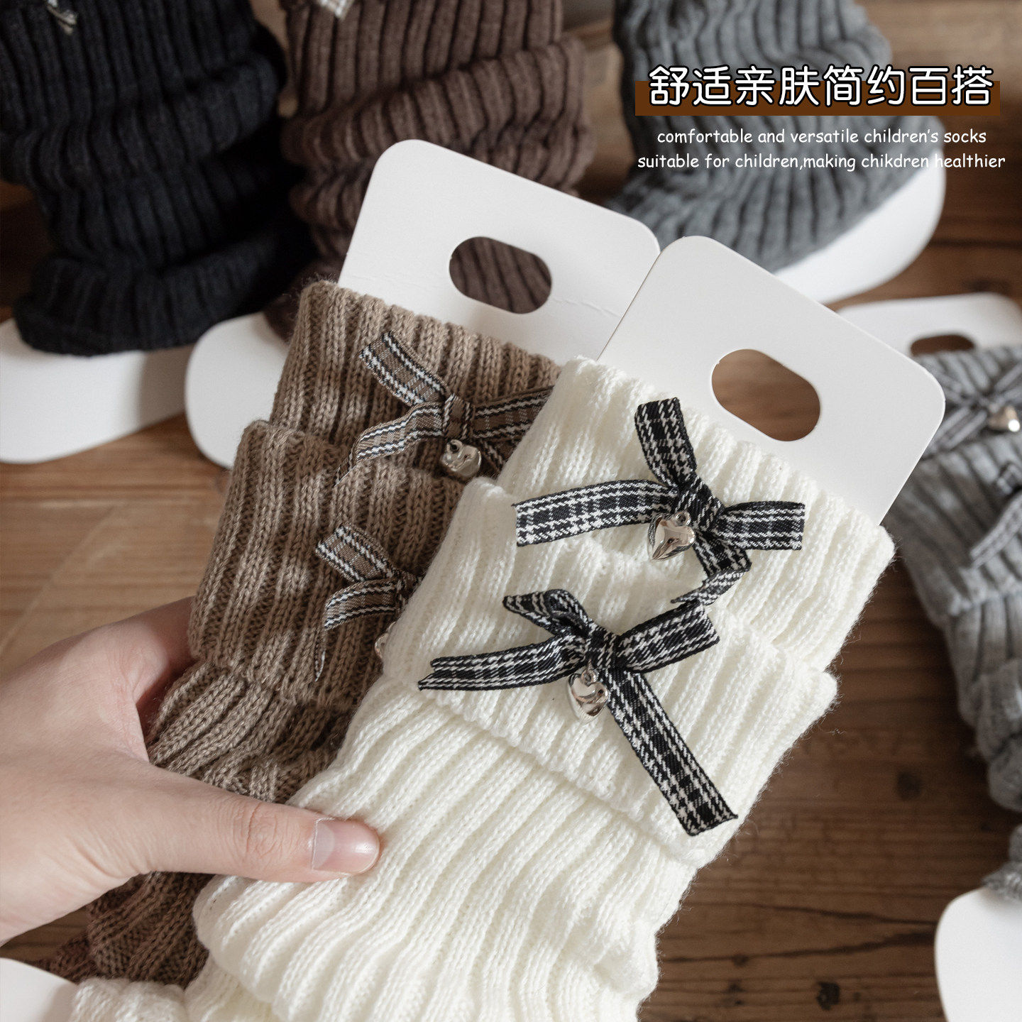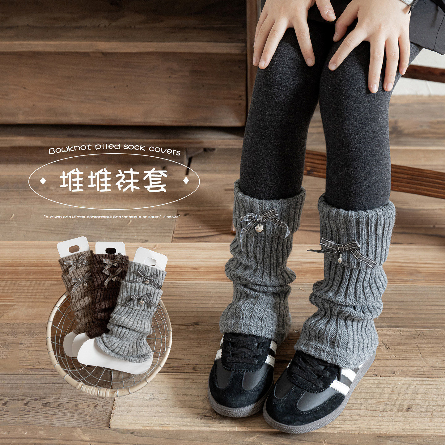 女童袜套秋冬季复古蝴蝶结堆堆袜子韩系儿童毛线针织保暖小腿腿套