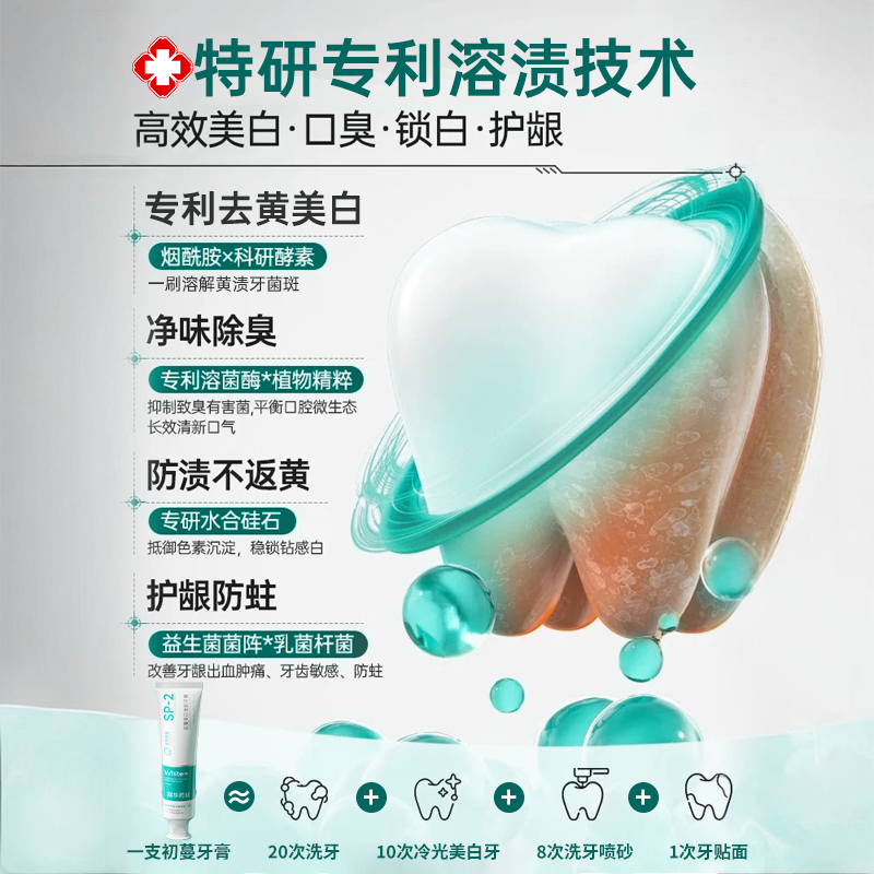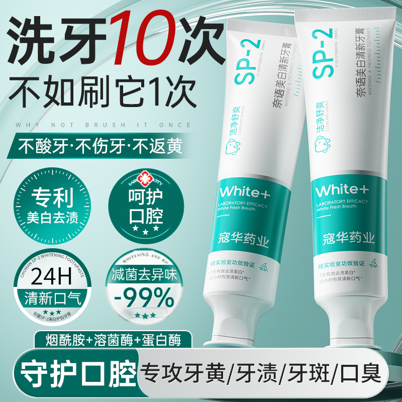 小苏打美白牙膏去黄口臭益生菌酵素成人速效洗白锁白防蛀清新口气