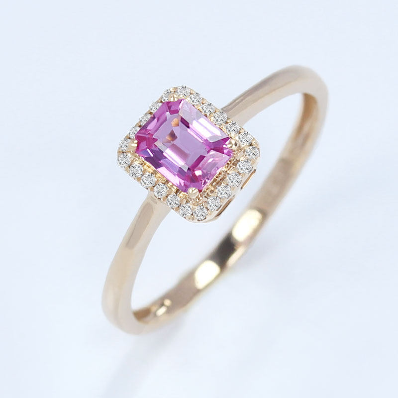 18k玫瑰金天然亮樱花粉色蓝宝石戒指 近玻璃体彩色镶钻石女戒定制