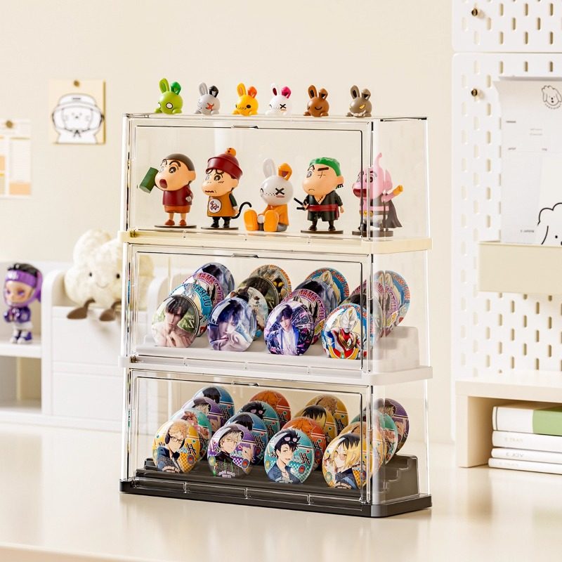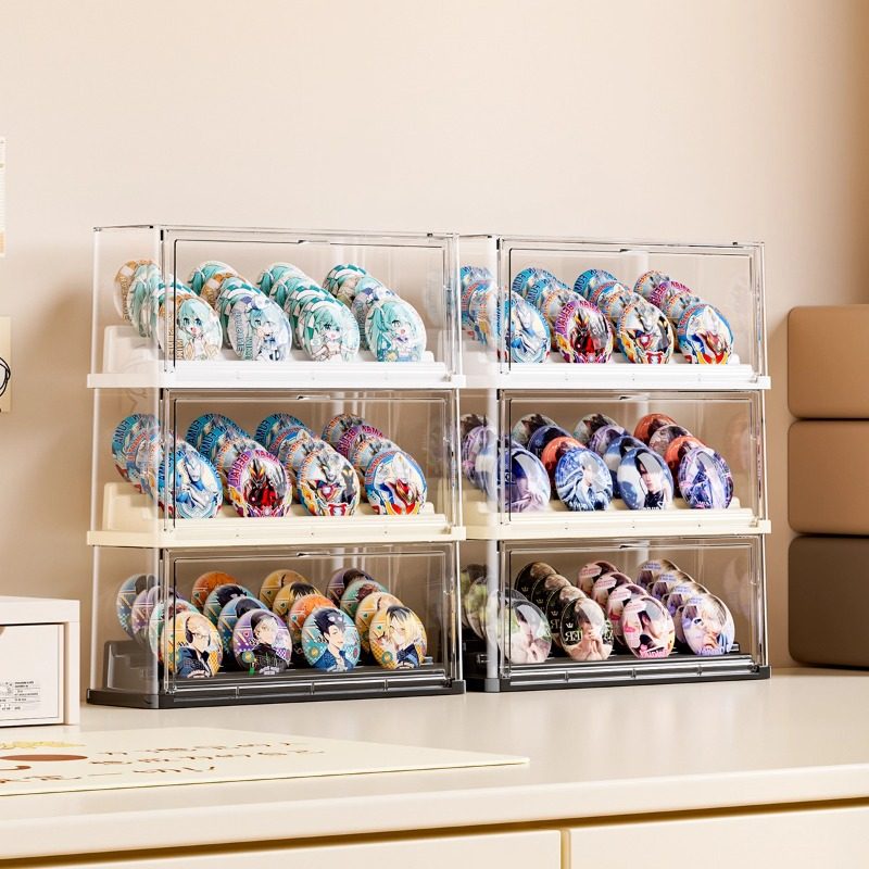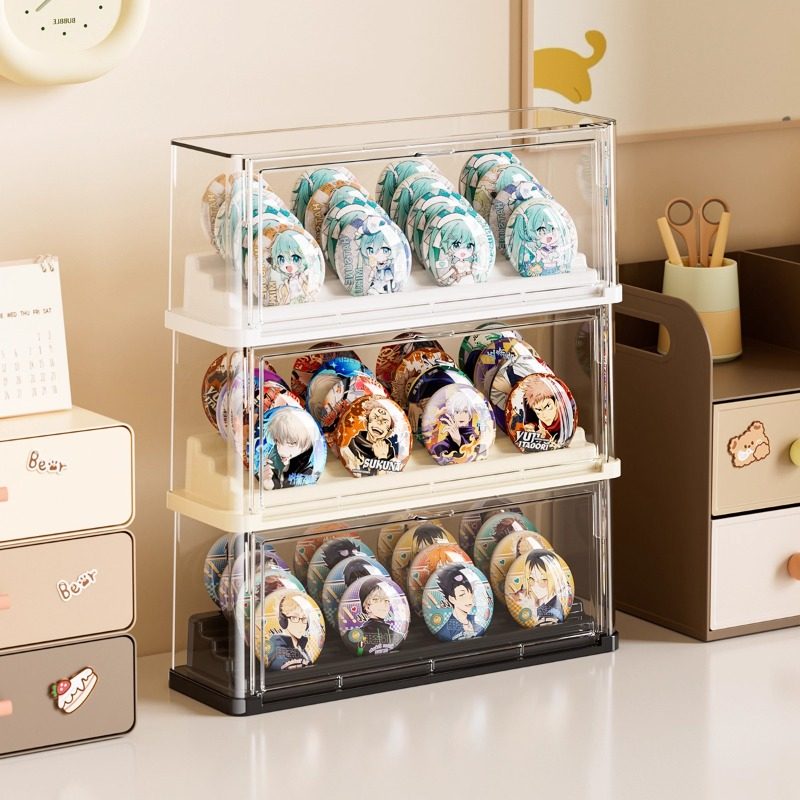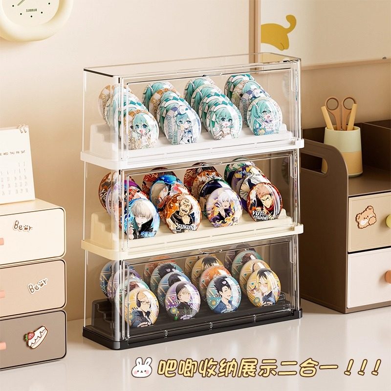 吧唧展示架桌面亚克力透明防尘盒子动漫周边谷子徽章收纳盒单个