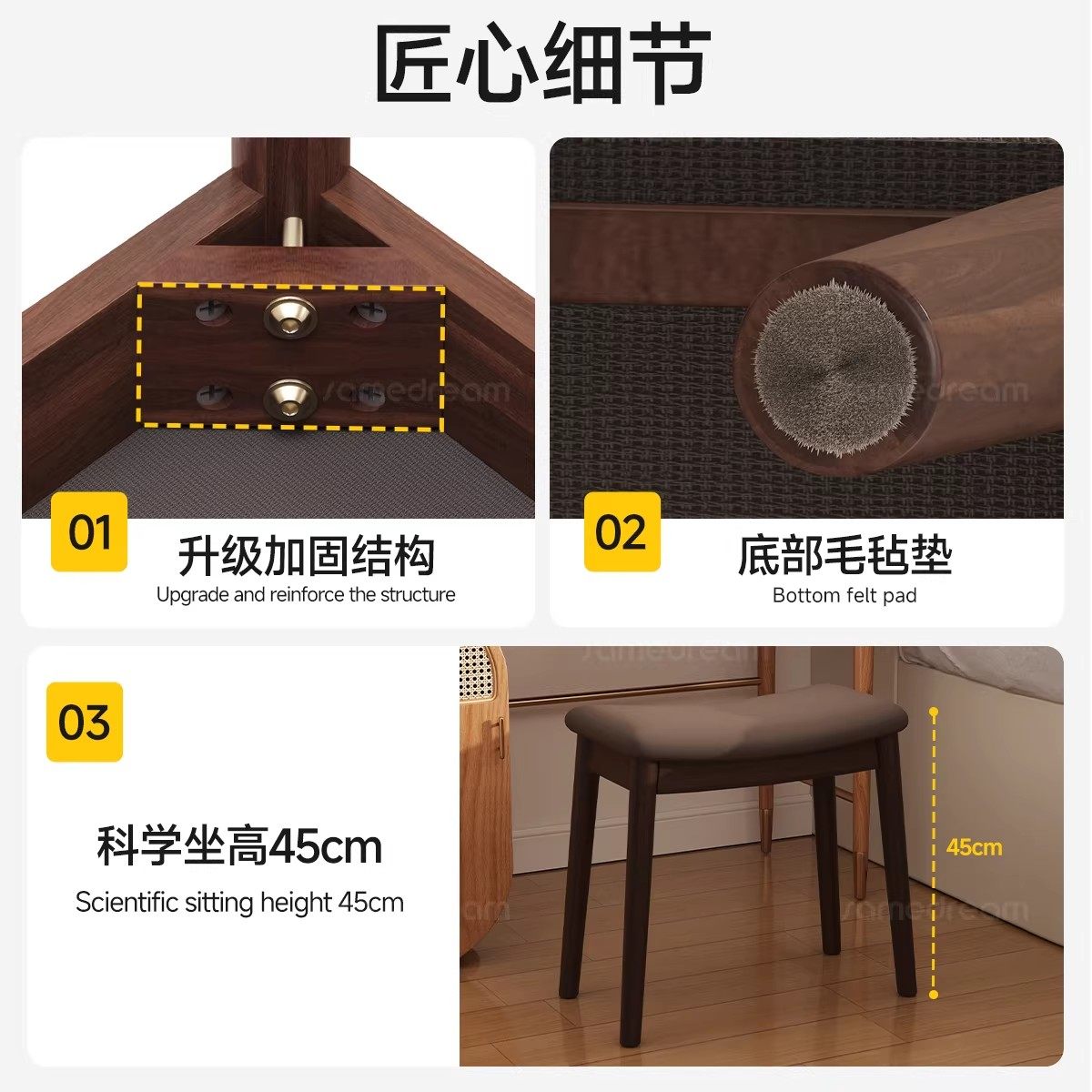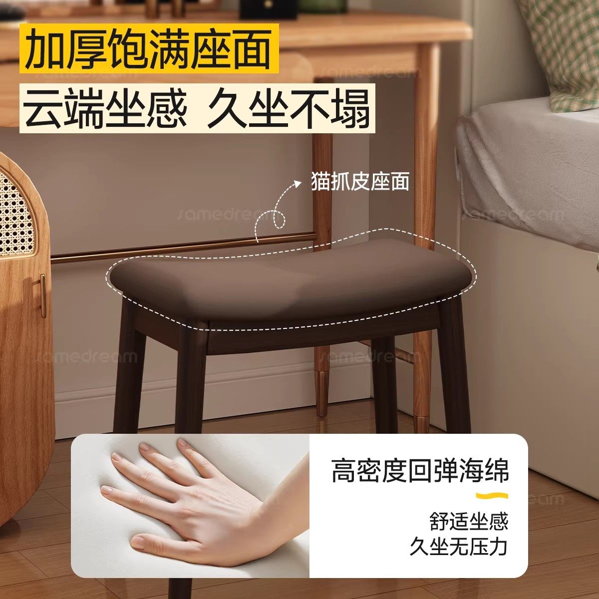 现代简约无靠背梳妆台椅子实木软包小户型玄关换鞋凳女生化妆矮凳