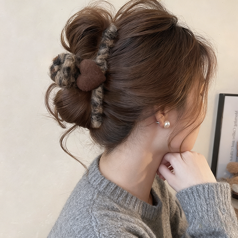 韩系豹纹毛绒爱心大号抓夹女秋冬2025新款后脑勺盘发鲨鱼夹子发夹