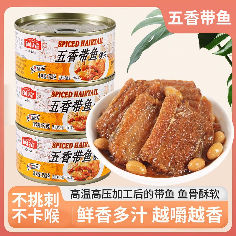 闽星【带鱼罐头*6罐】即食深海海鲜零食五香香辣下饭下酒菜