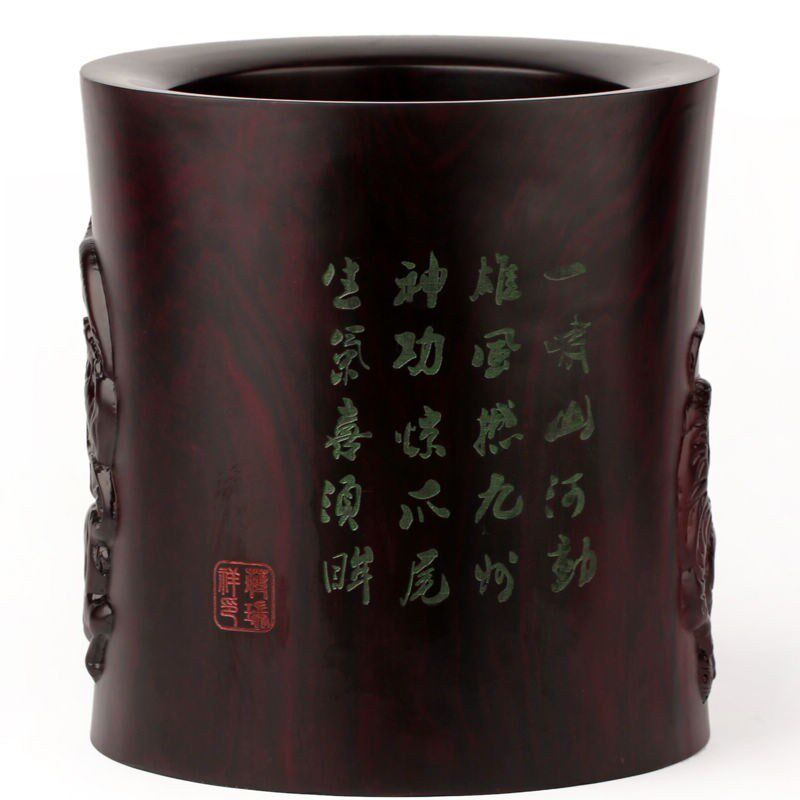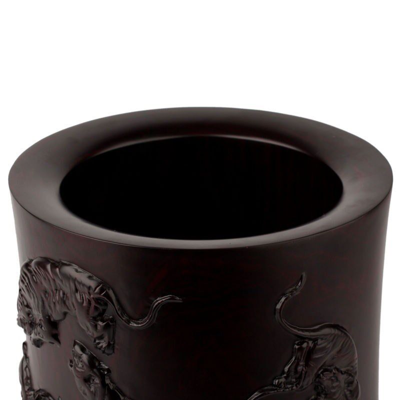 红木雕刻大笔筒办公室桌面实木摆件 中国风紫檀木制毛笔收纳桶大