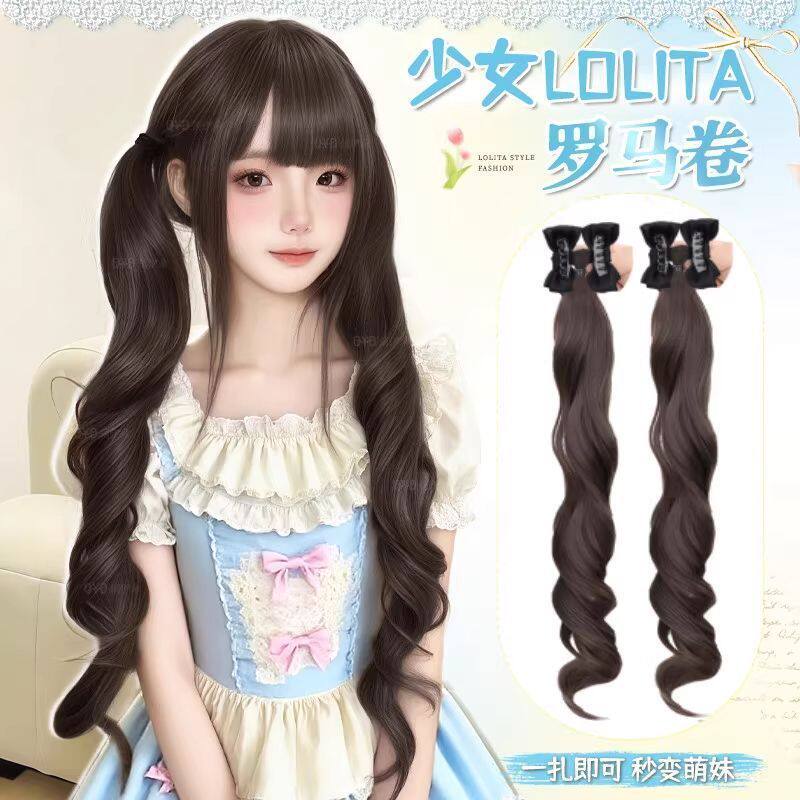 假发女Lolita罗马卷双马尾洛丽塔虎口夹罗马卷长发辫古早风侧马尾