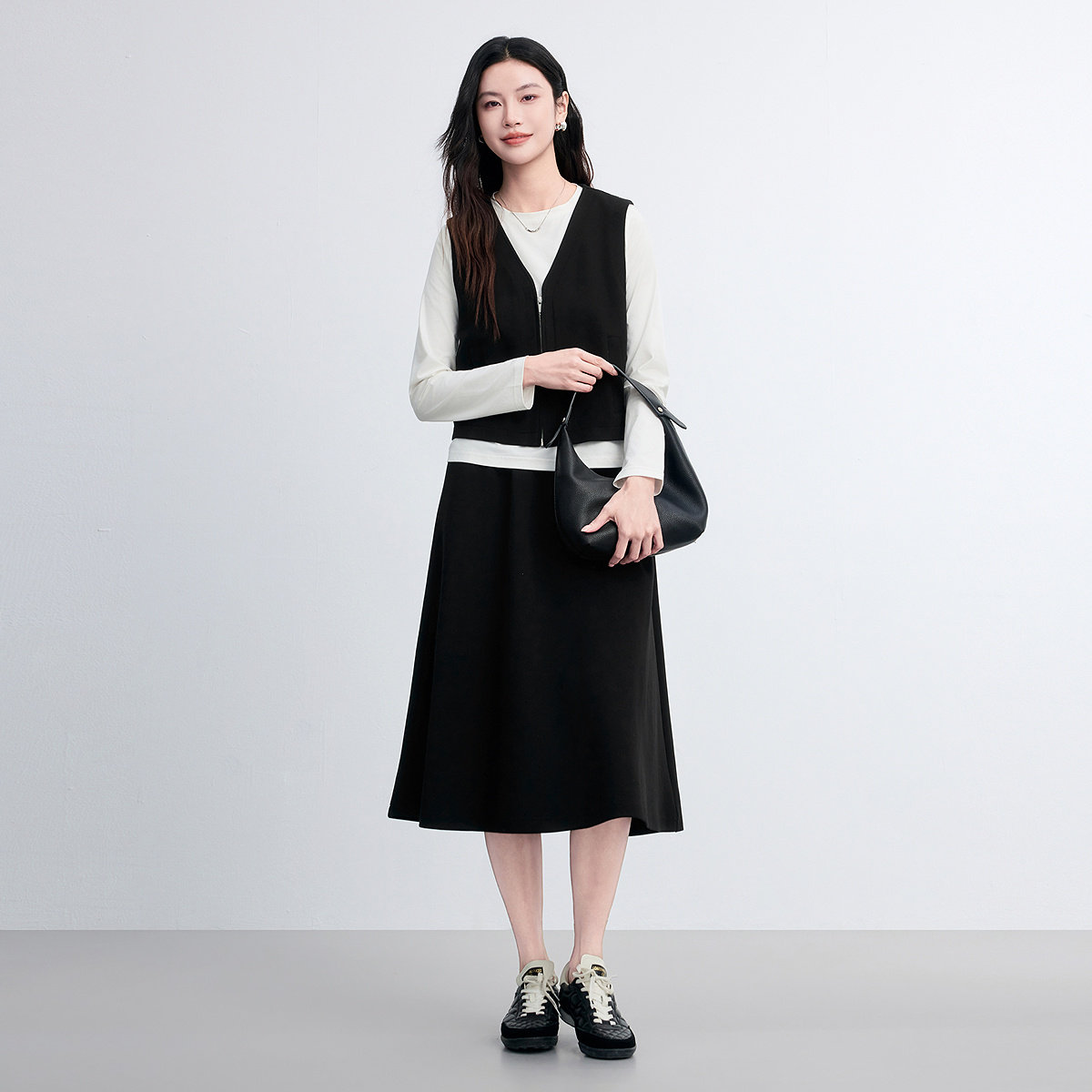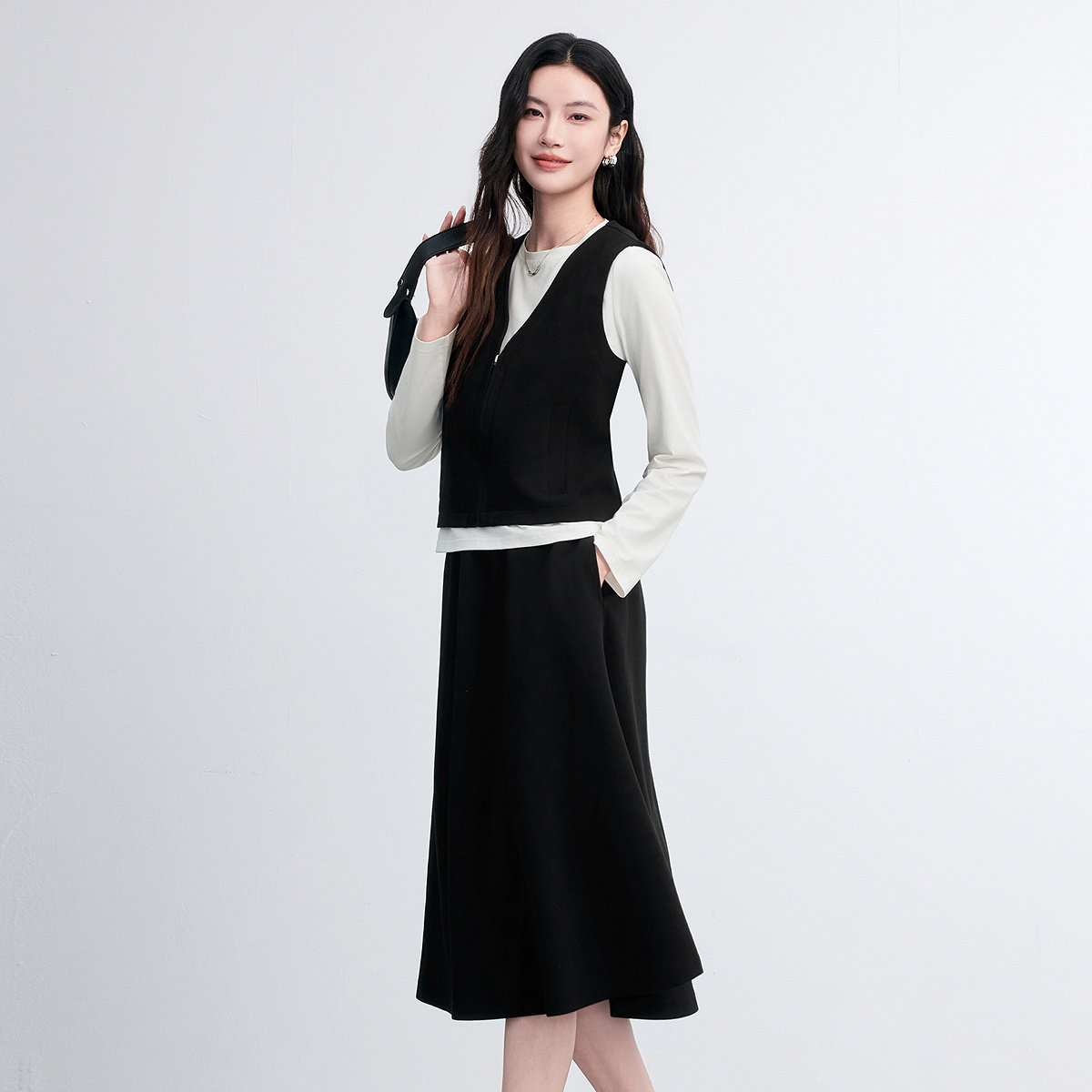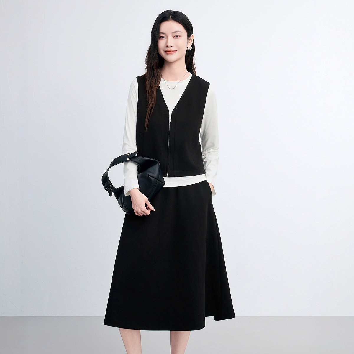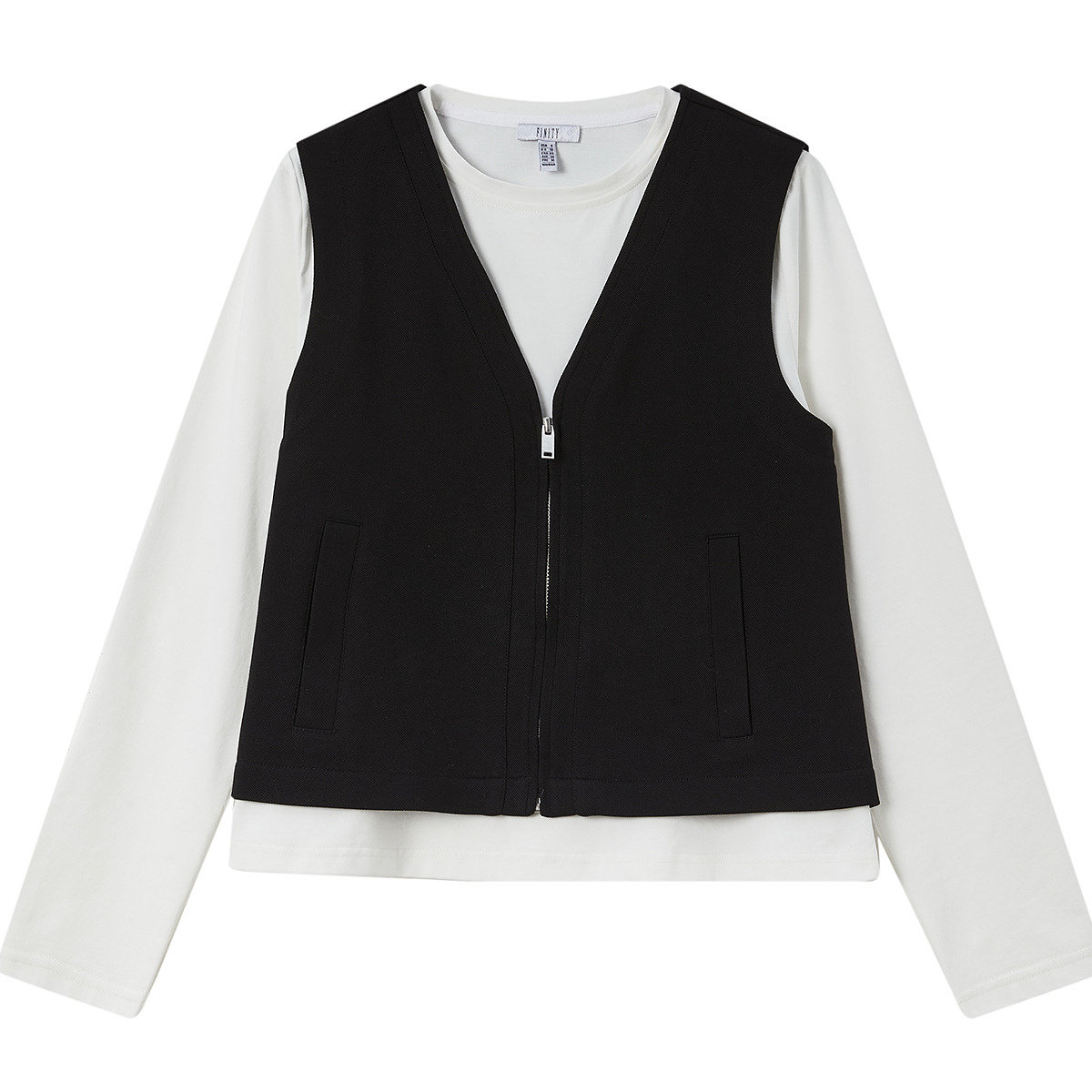 FINITY菲妮迪时尚套装2026春新款简约黑白撞色两件套设计套装女装