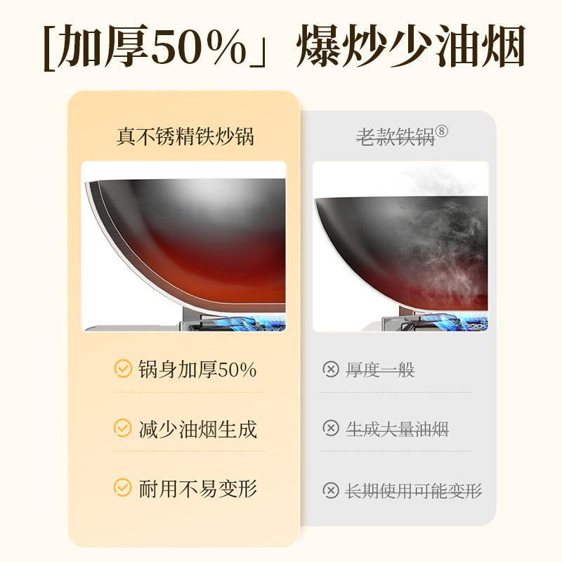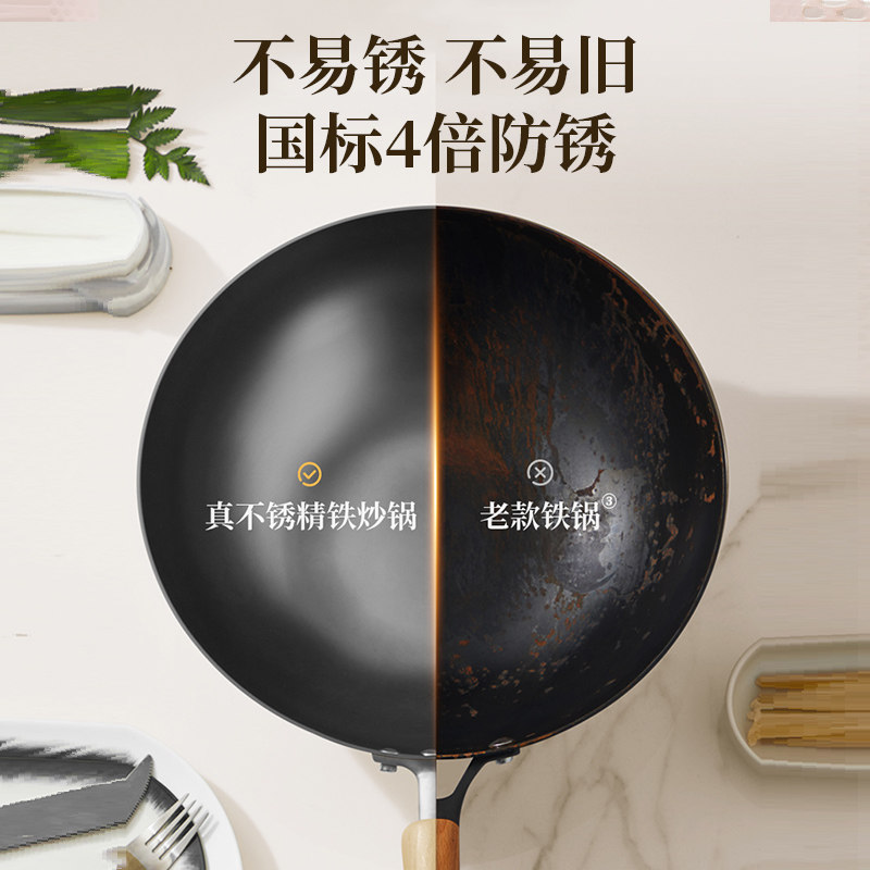 苏泊尔铁锅炒菜锅家用0涂层精铁不粘锅不锈炒锅免开锅精铁炒锅