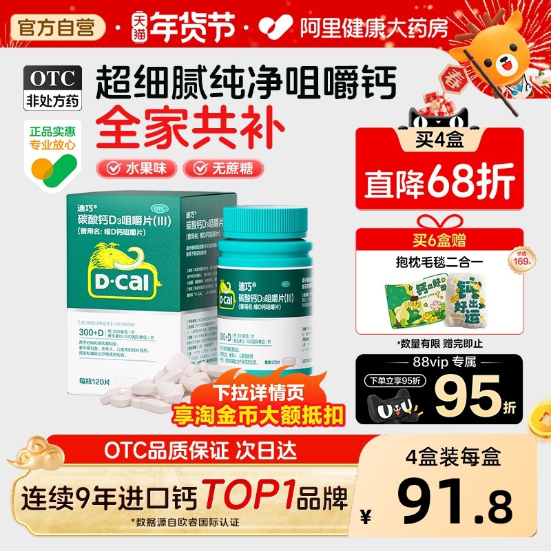 迪巧碳酸钙维生素d3咀嚼片成人钙片中老年人补钙孕维d3孕妇钙片d3