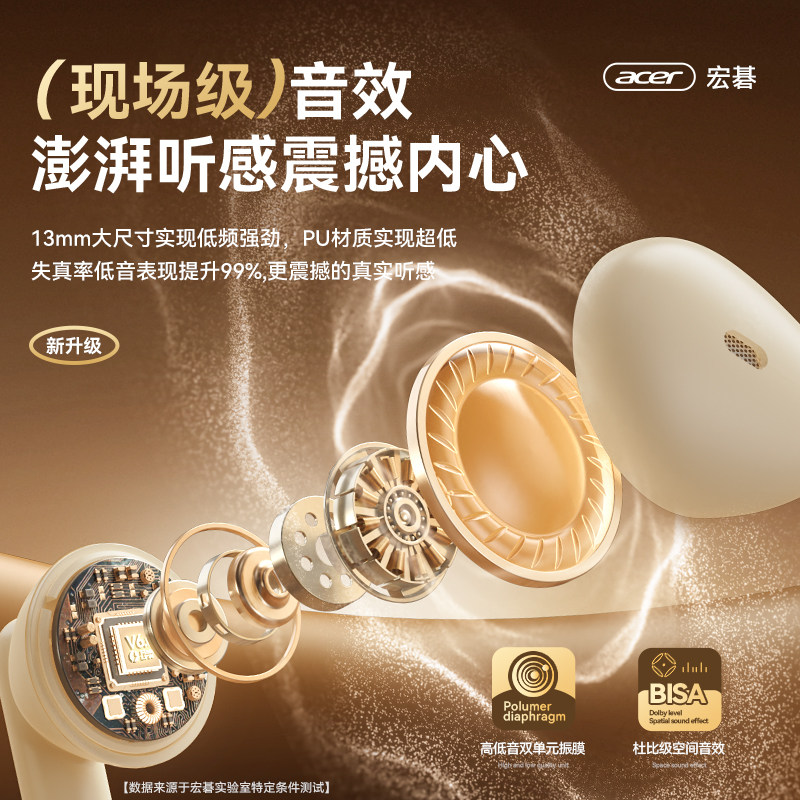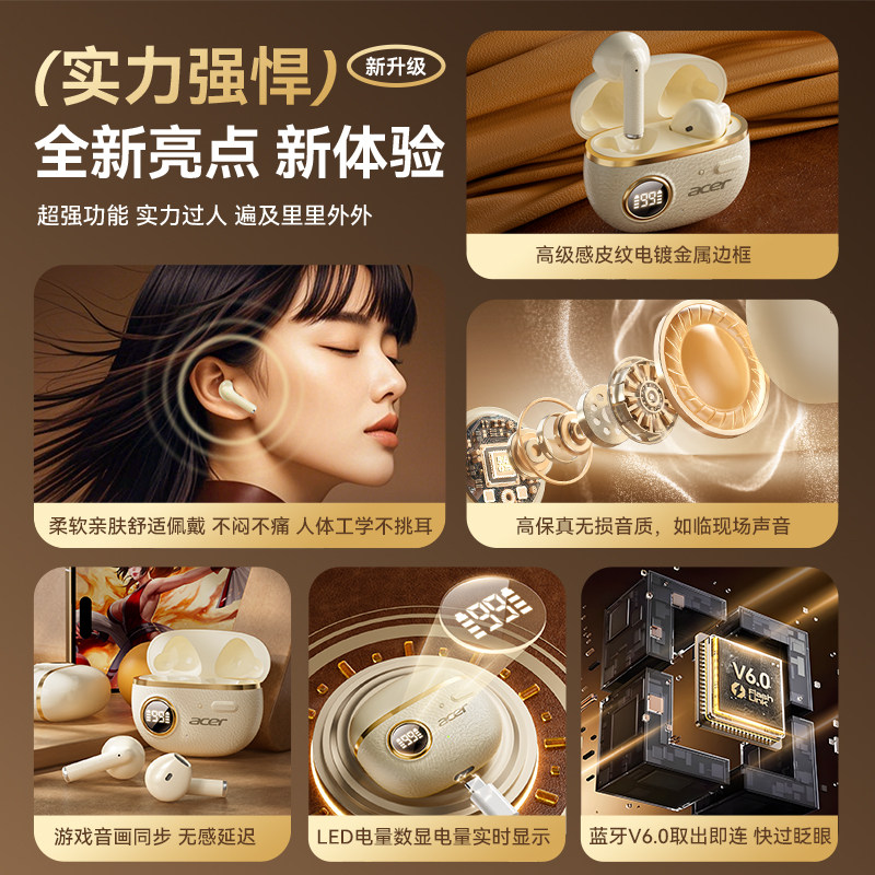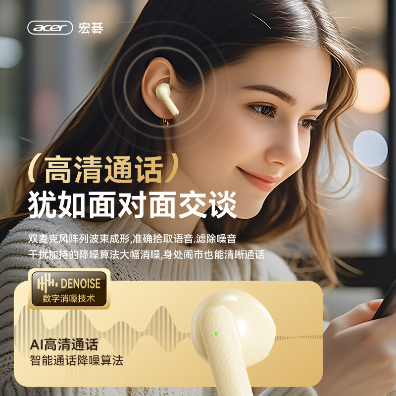 Acer宏碁蓝牙耳机高音质游戏运动无线半入耳式通话降噪超长续航