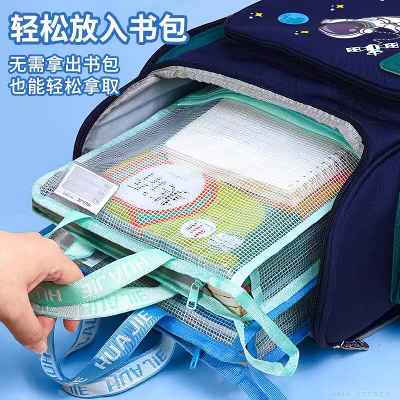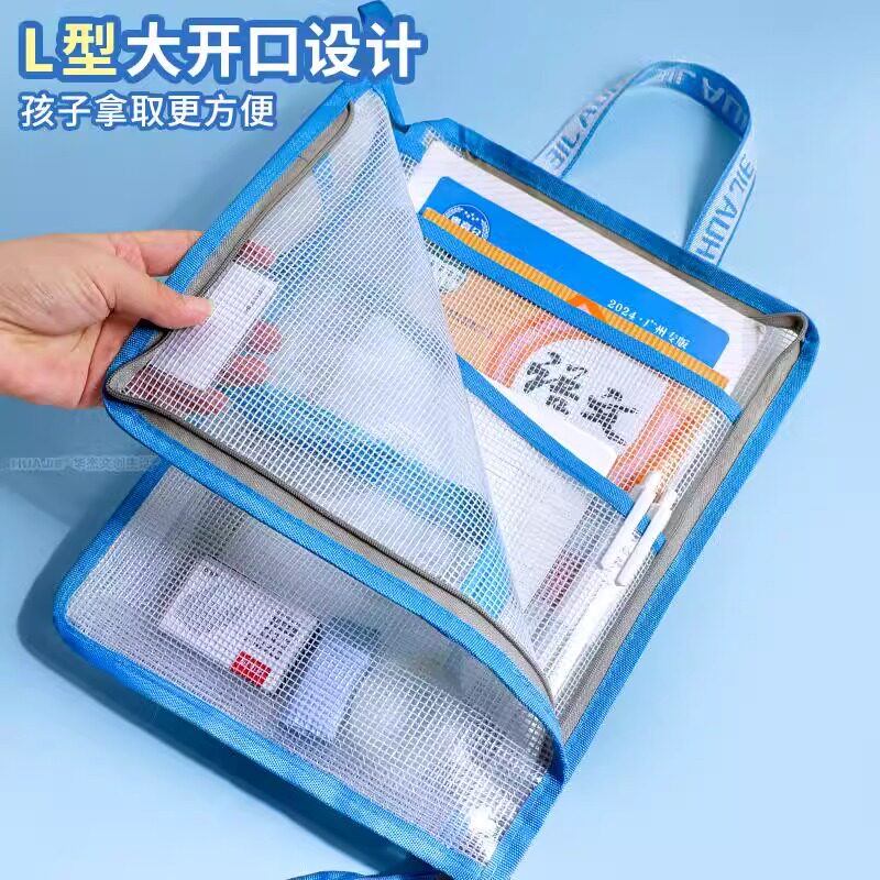 晨光文具学科科目分类袋小学生文件袋拉链式试卷收纳袋透明网纱双层大容量书袋作业资料a4考试专用袋票据产检