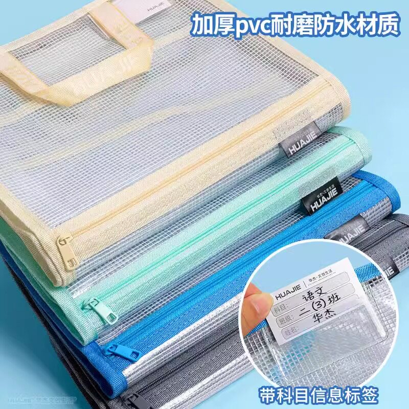 网格文件袋加厚透明网格拉链袋A4试卷收纳袋学生用考试文具袋防水笔袋办公用品批发公文档案袋资料袋包邮