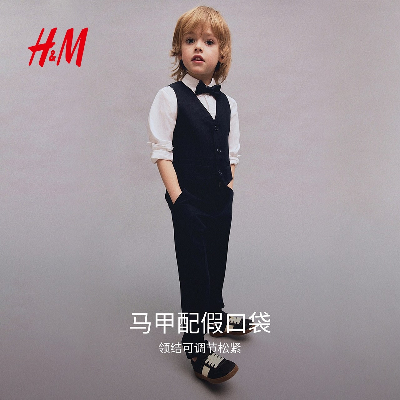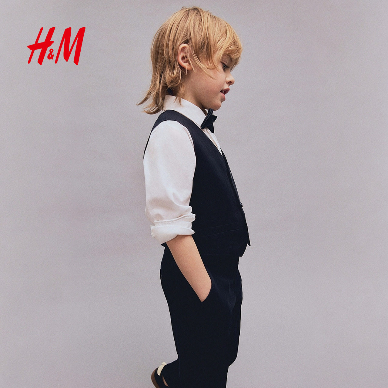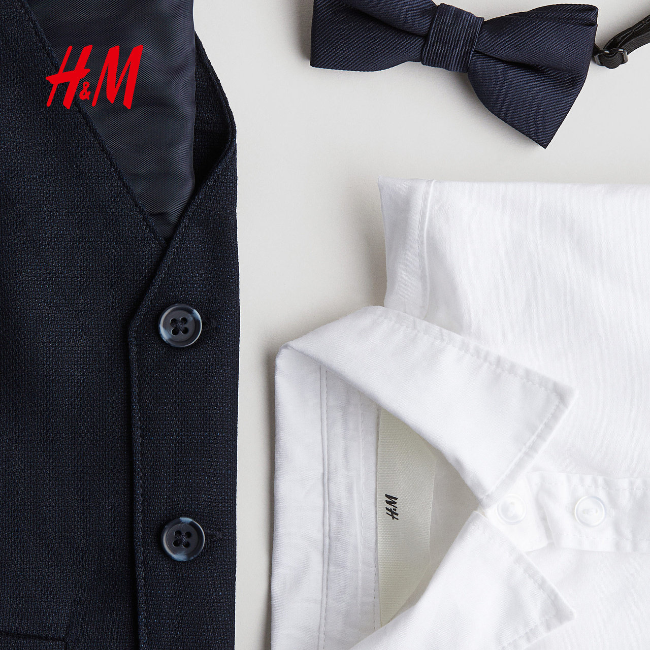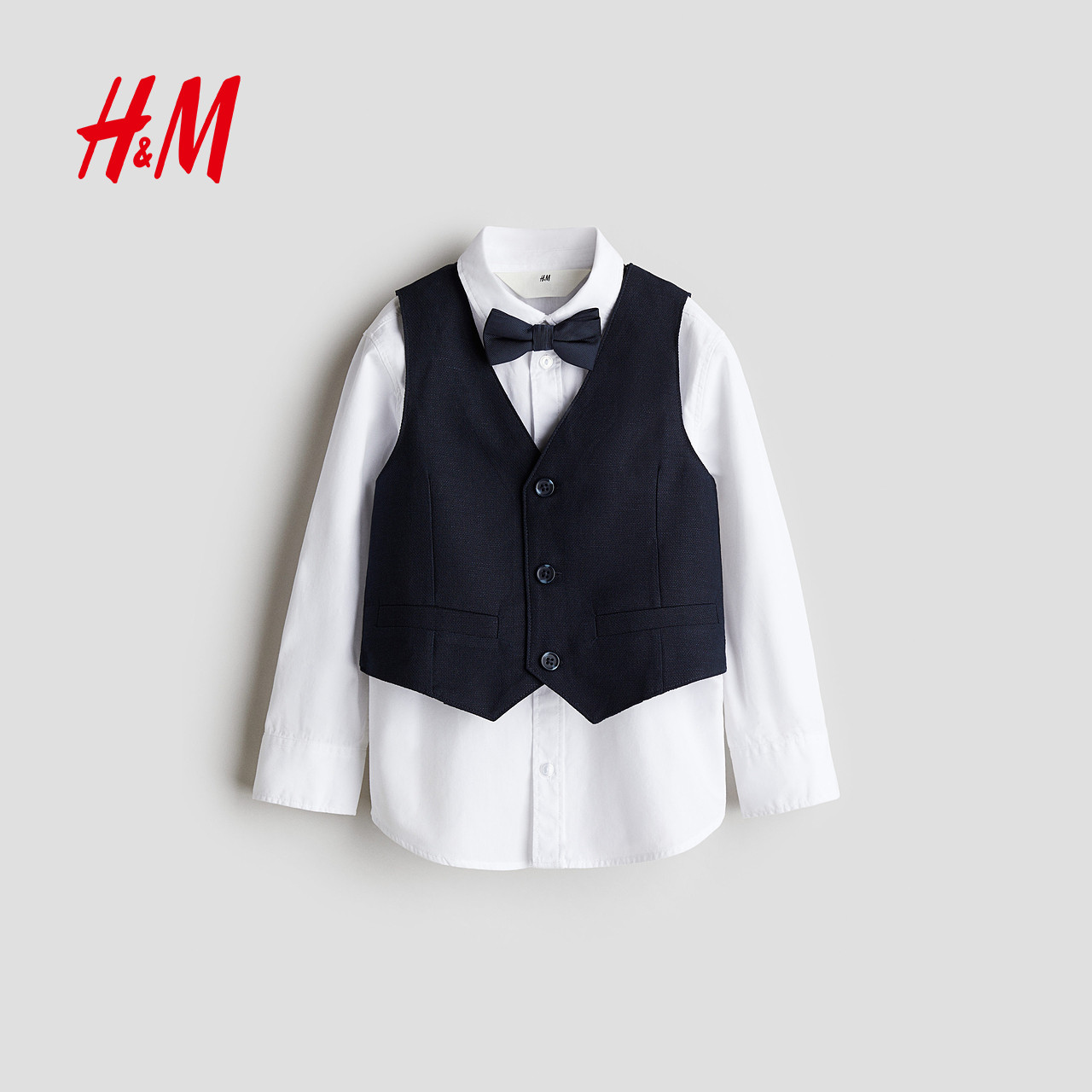 HM童装男童套装3件式新款上衣马夹领结派对小少爷礼服衬衫1166050