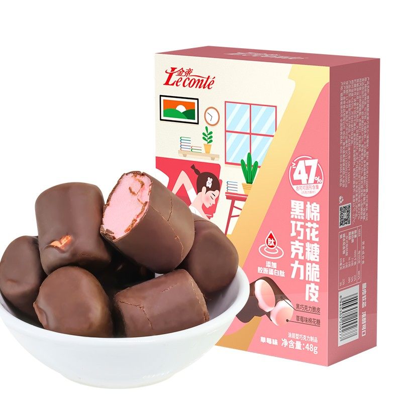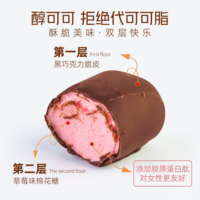 金帝黑巧脆皮棉花糖巧克力草莓味添加胶原蛋白肽纯可可脂童年零食