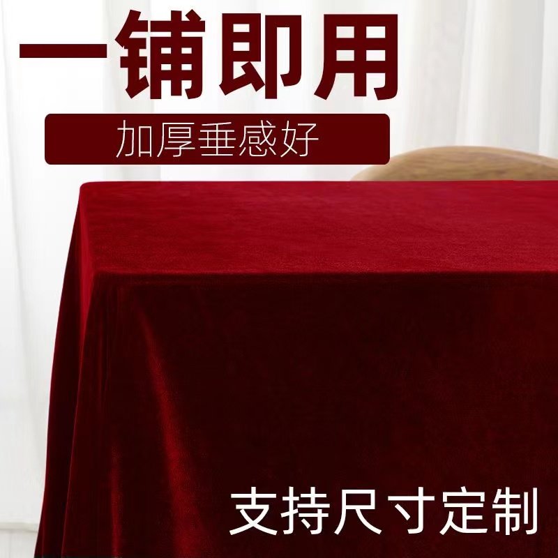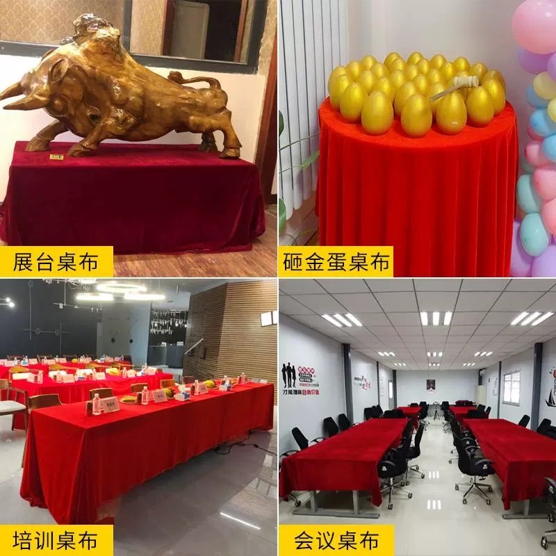 小红书同款金丝绒会议桌布红色绒布办公展会活动结婚礼桌布长方形
