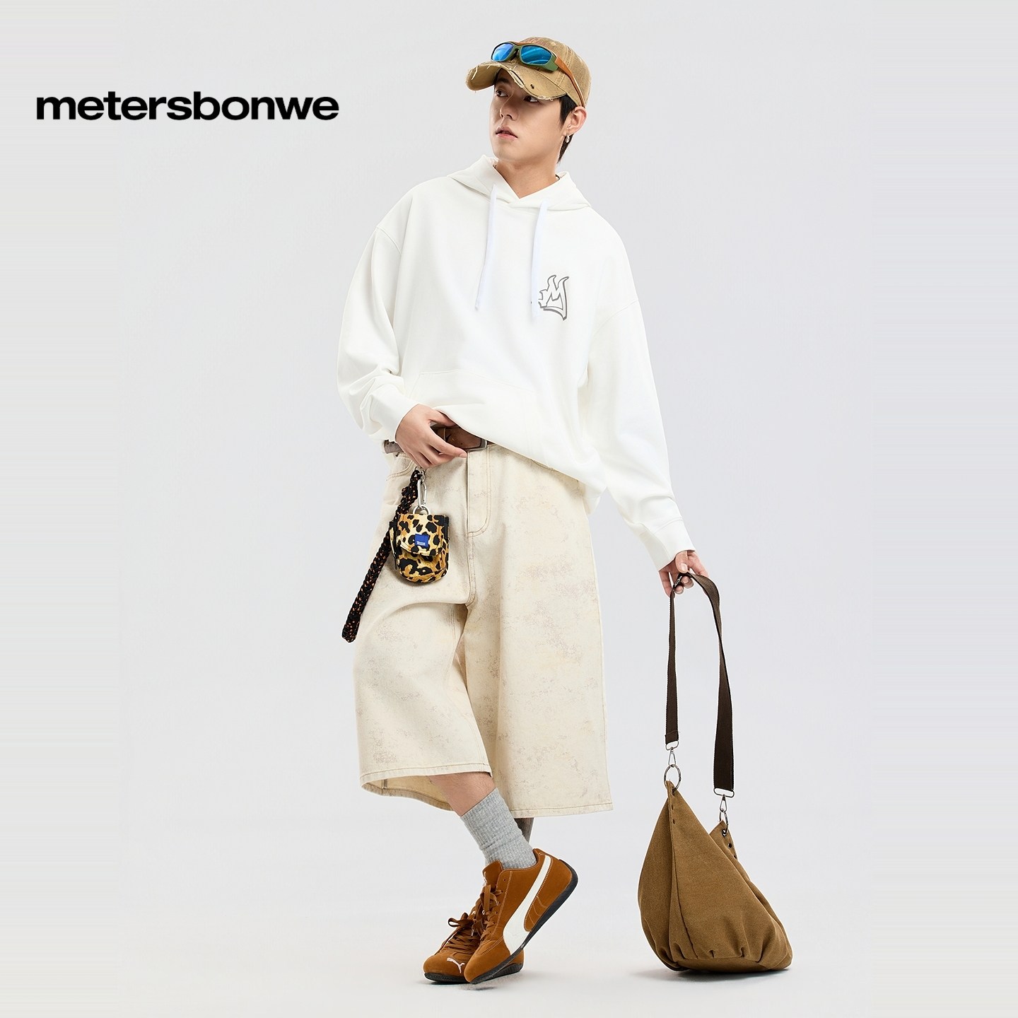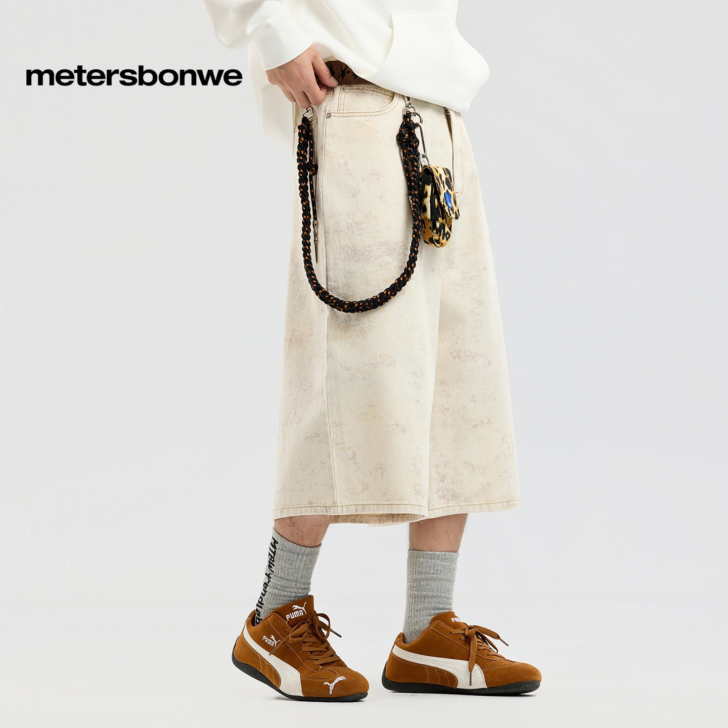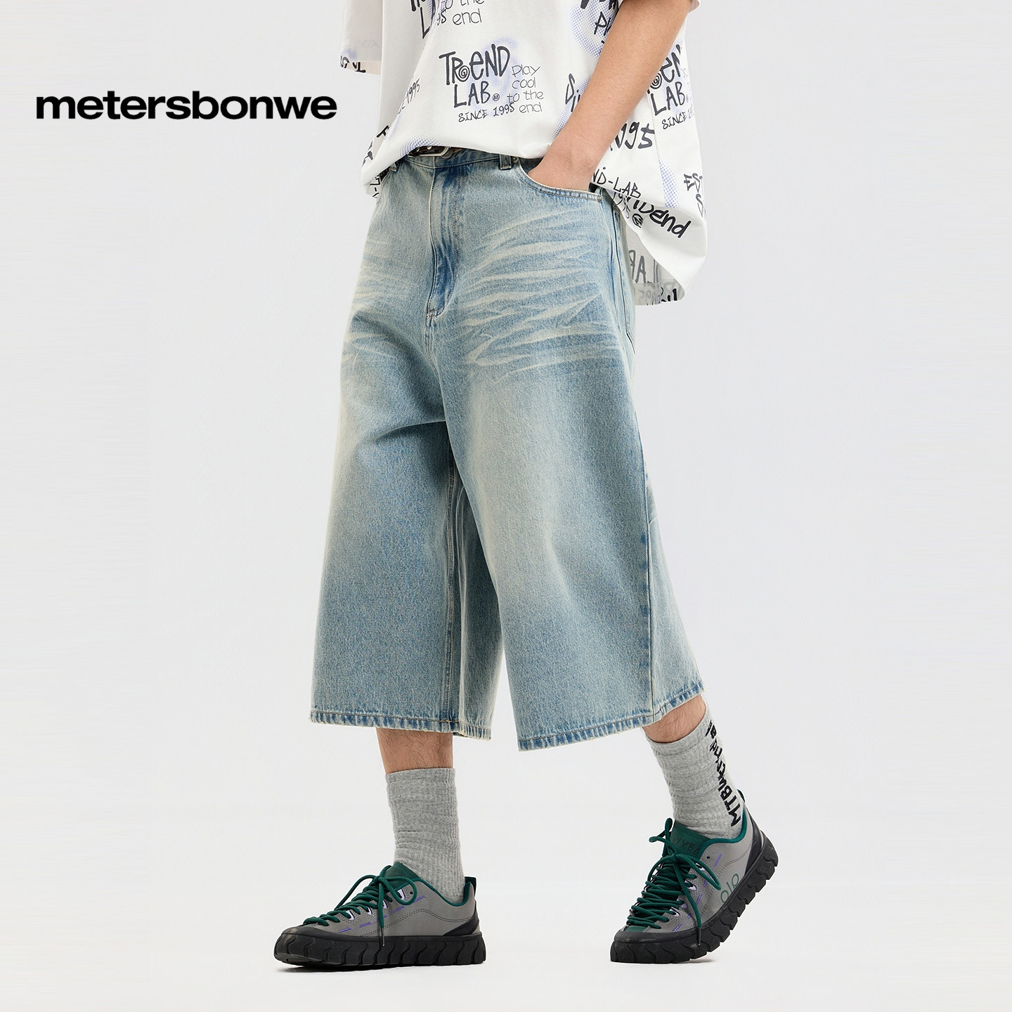 美特斯邦威男女同款2026春季新款潮流宽松阔腿情侣七分纯棉牛仔裤
