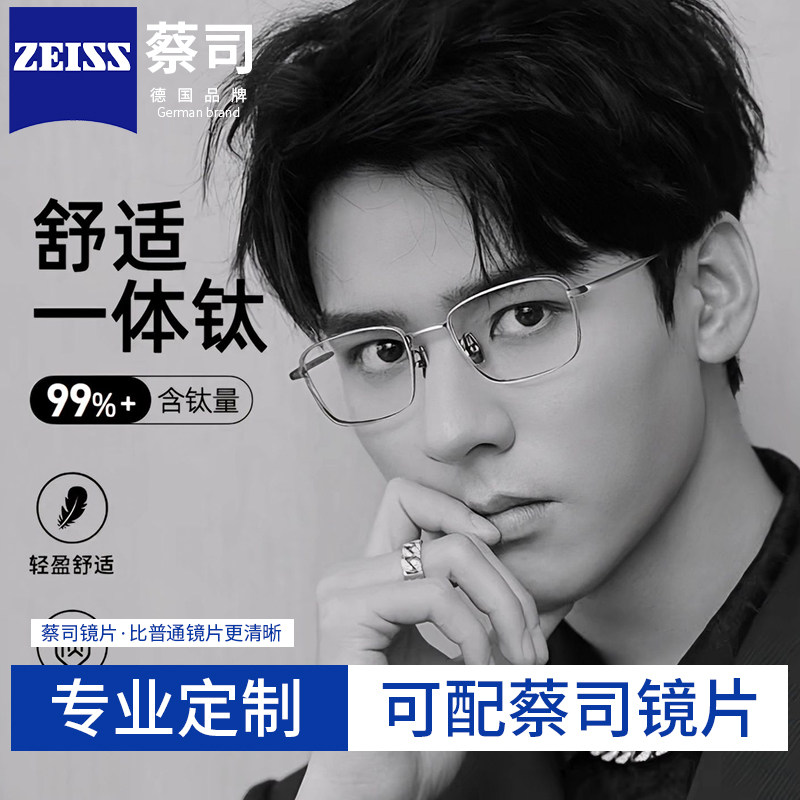 德国蔡司眼镜近视男眉框散光纯钛超轻镜片定制度数可配蓝光女镜框