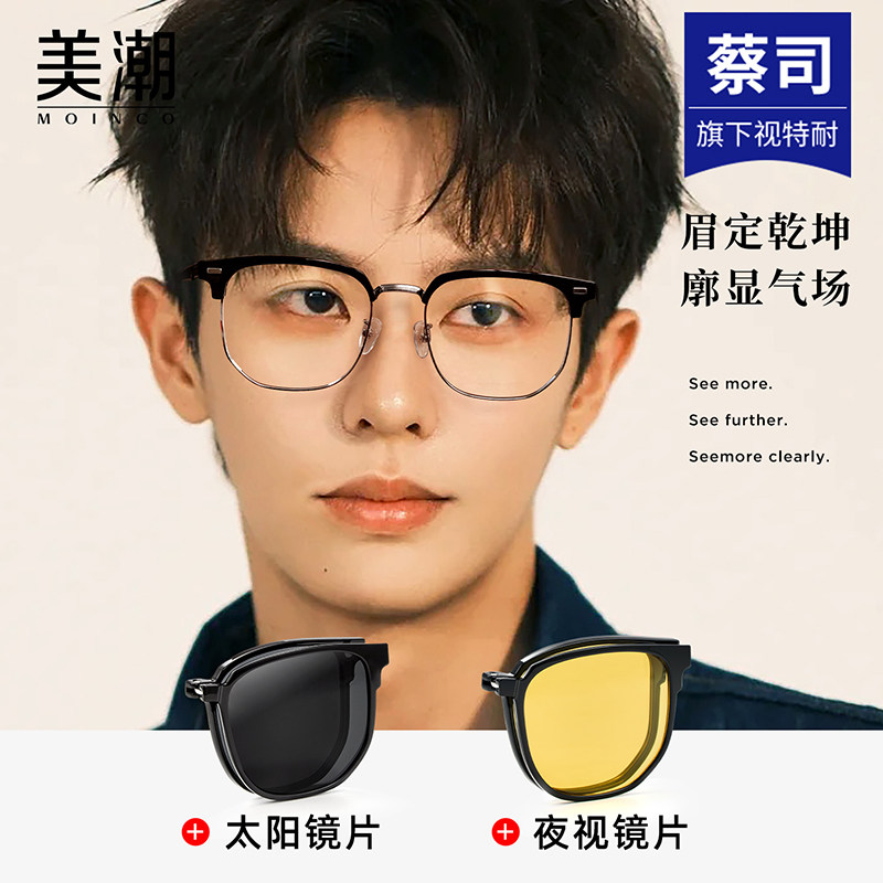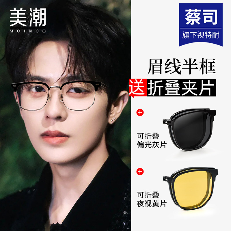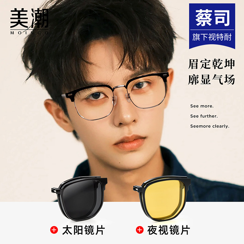 眉线半框磁吸套镜近视眼镜男款开车专用三合一折叠偏光太阳镜夹片