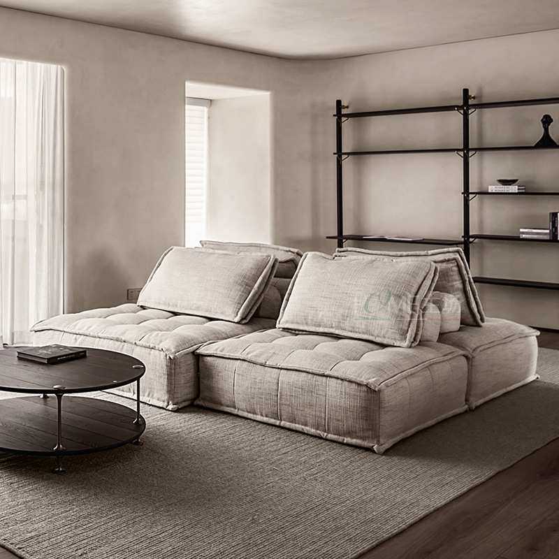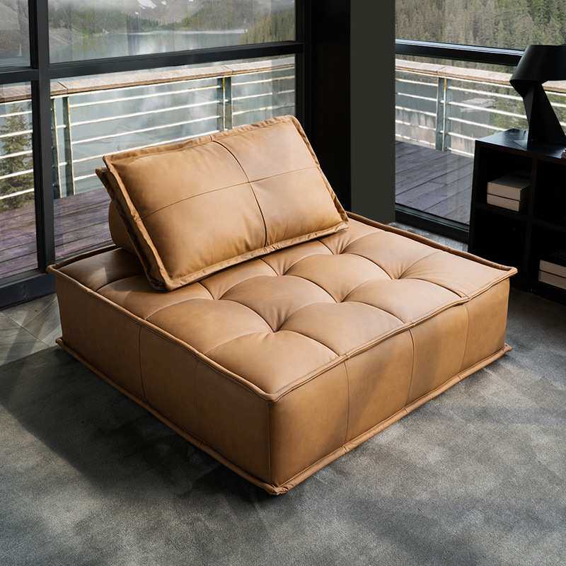 北欧布艺沙发客厅组合无扶手皮埃蒙特单人位三人懒人皮革组合沙发