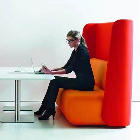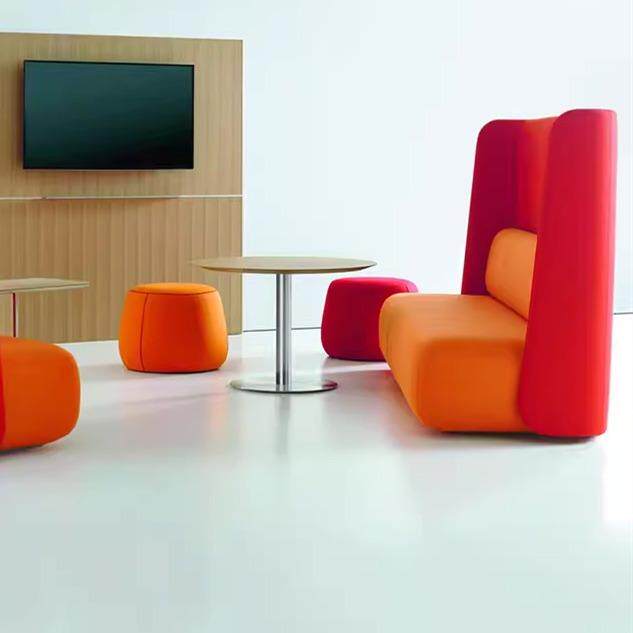 简约办公沙发高背布艺休闲洽谈沙发茶几组合高隔断卡座沙发